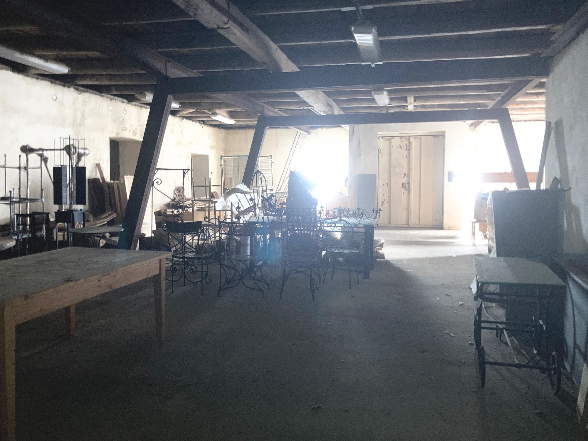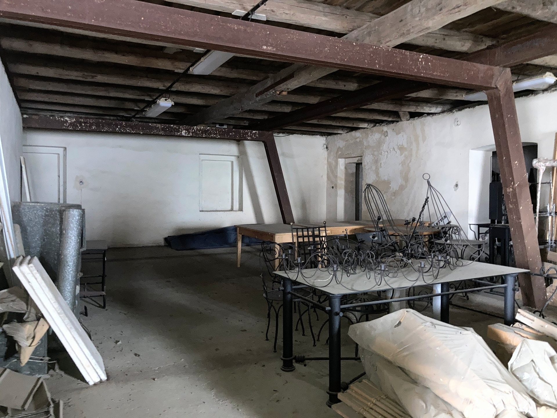 Dispozice nebytových prostor 1597m²: Dvě prodejny se společným zázemím 90 m², skladové prostory se sociálním zařízením a dvěma kancelářemi 707 m² a další třípatrová podsklepená část bez určení s užitnou plochou 800 m². Ve skladovém prostoru se nachází technický výtah do 500 kg. Jelikož se jedná o dispozičně komplikovanější objekty více napoví osobní prohlídka.