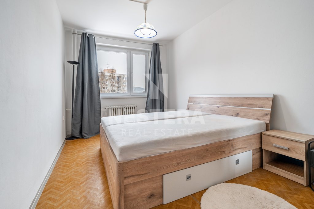 Dispozice bytu je praktická a funkční. Díky velkým oknům orientovaným na jihovýchod je interiér příjemně prosvětlený po celý den. Z bytu je výhled do klidného vnitrobloku se zelení, což zajišťuje dostatek soukromí a ticha. Byt působí klidným dojmem a je ideálním místem pro každodenní bydlení.