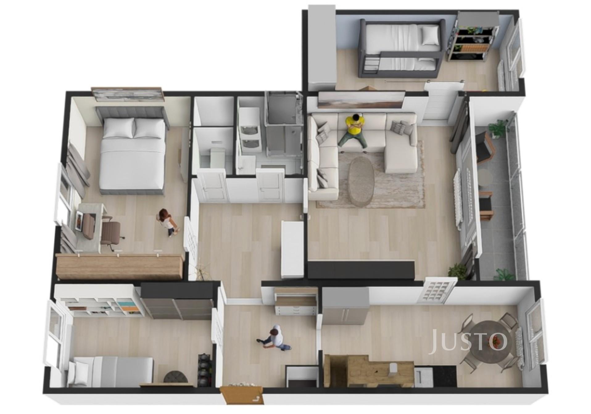 Součástí inzerce je 3D půdorys, který slouží k lepší představě o dispozici bytu. Dispozici lze případně upravit dle individuálních potřeb.