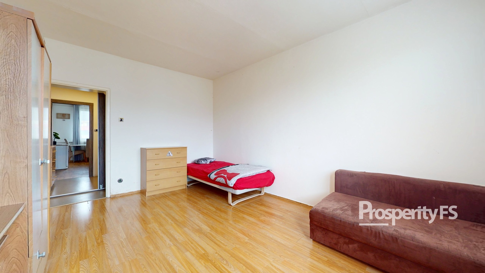 Dispoziční řešení bytu nabízí vstupní chodbu, prostorný obývací pokoj, kuchyň, ložnici a koupelnu s toaletou. Nabízený byt je v původním stavu, má umakartové bytové jádro, plastová okna. Podlahovou krytinu tvoří plovoucí podlaha v kombinaci s PVC. Velmi nízké měsíční náklady, lze získat na prohlídce. K bytu náleží sklepní kóje.