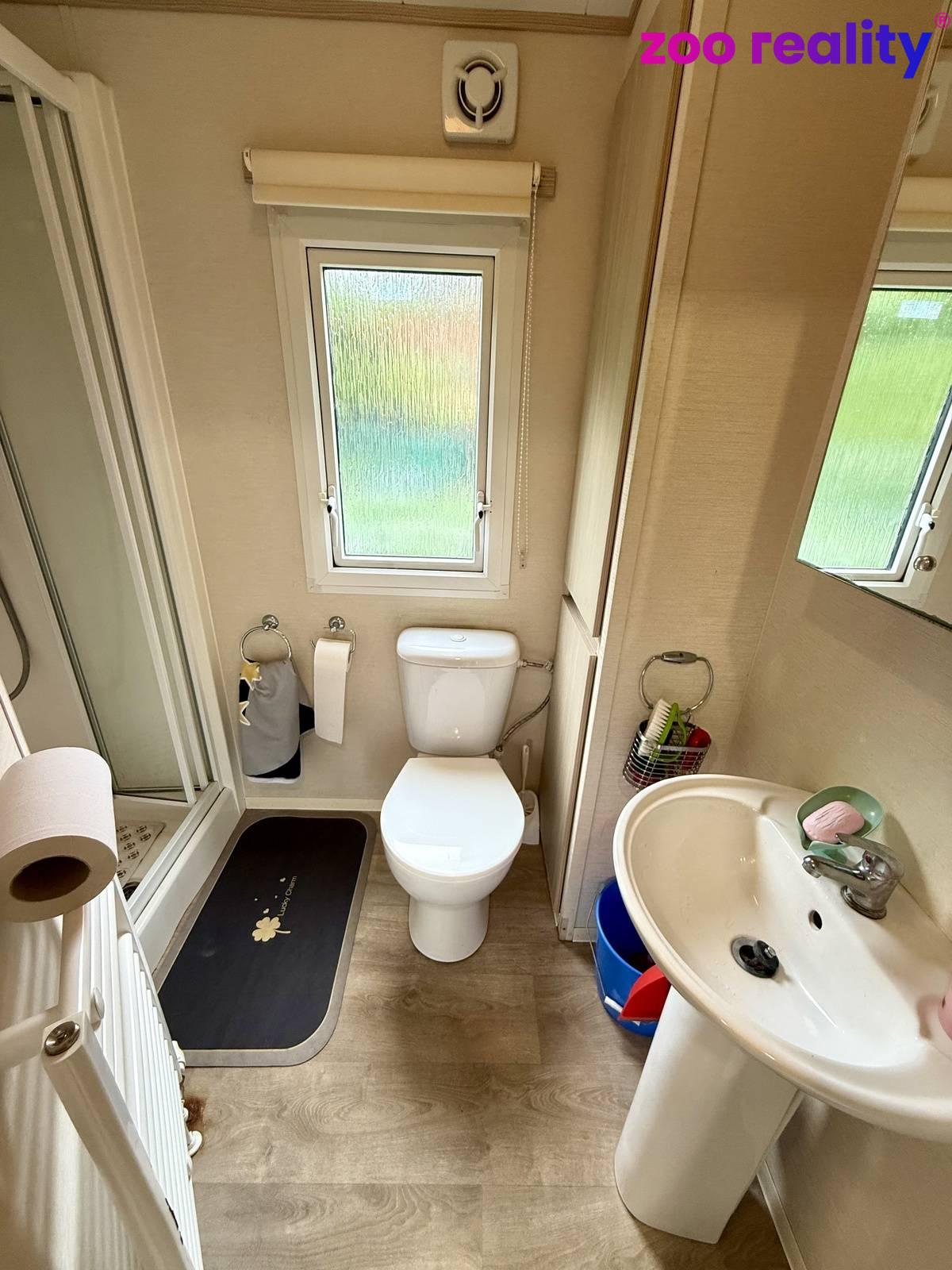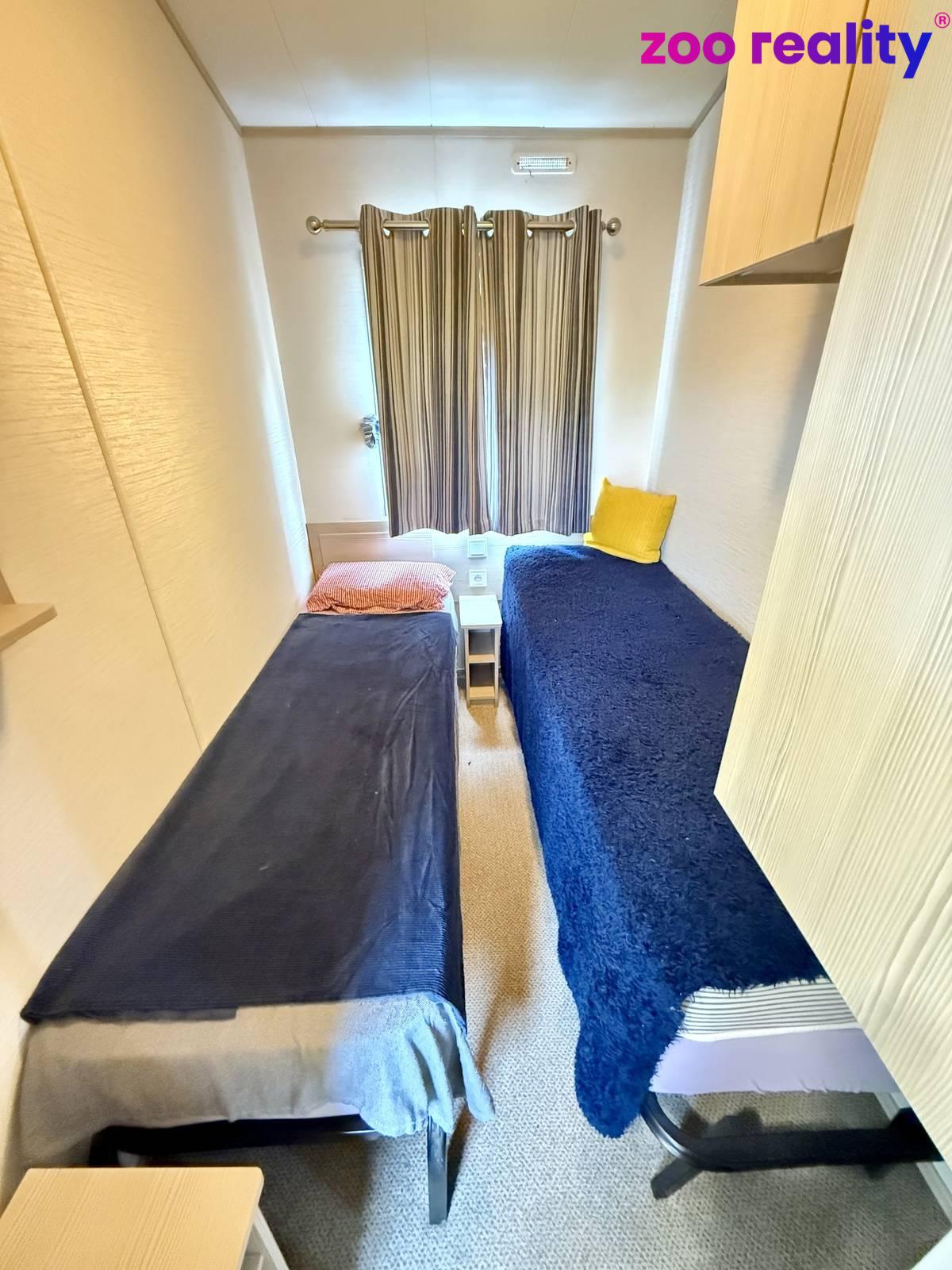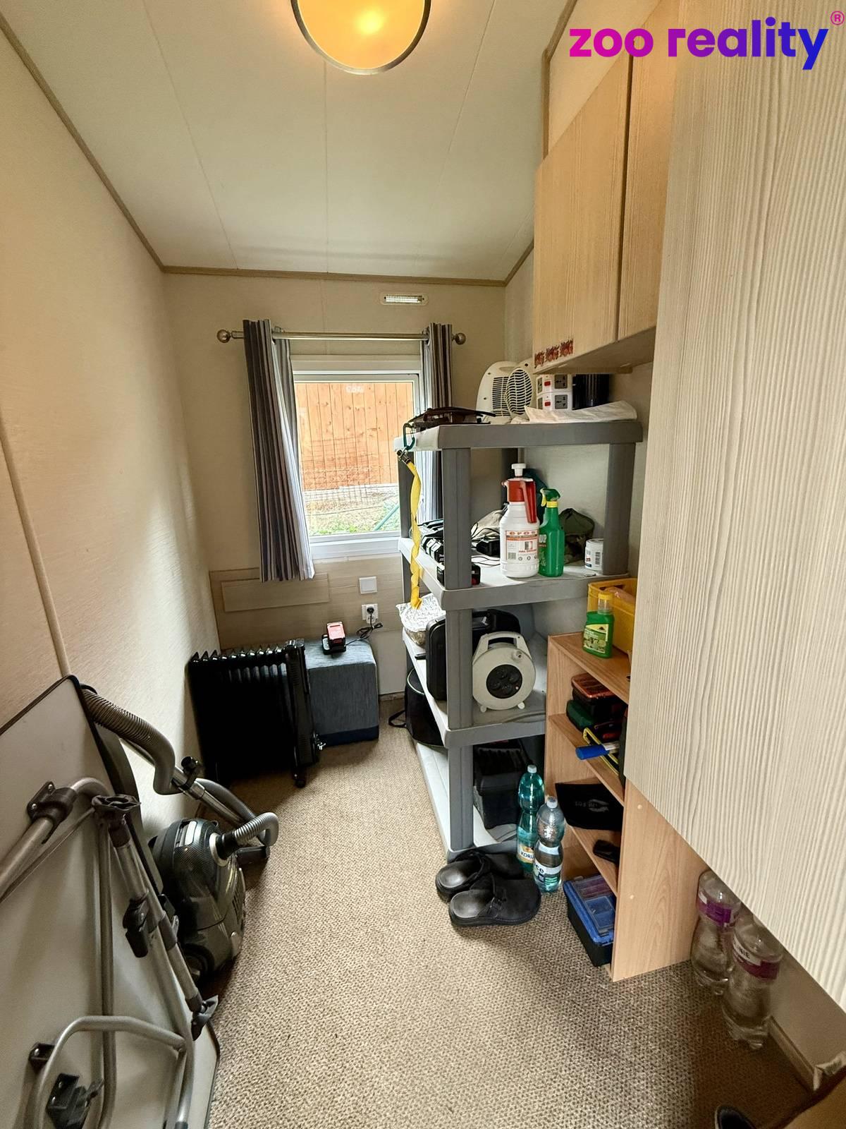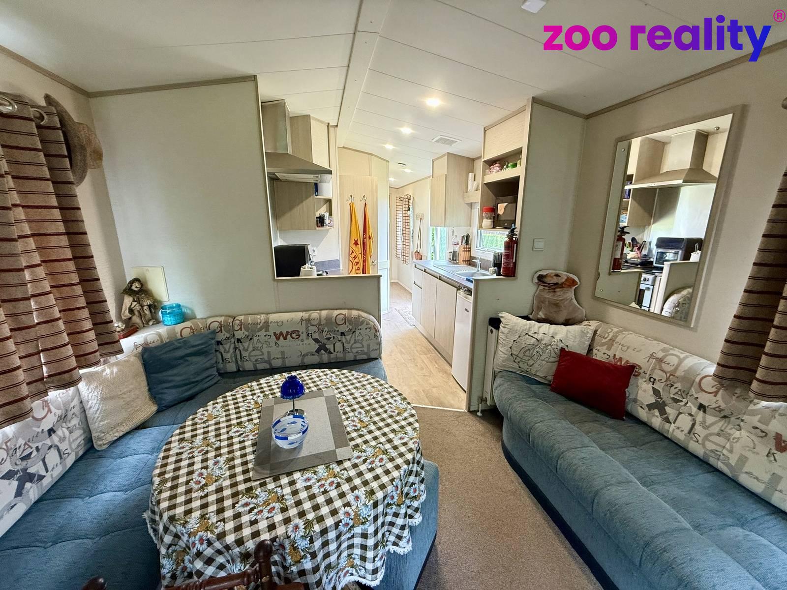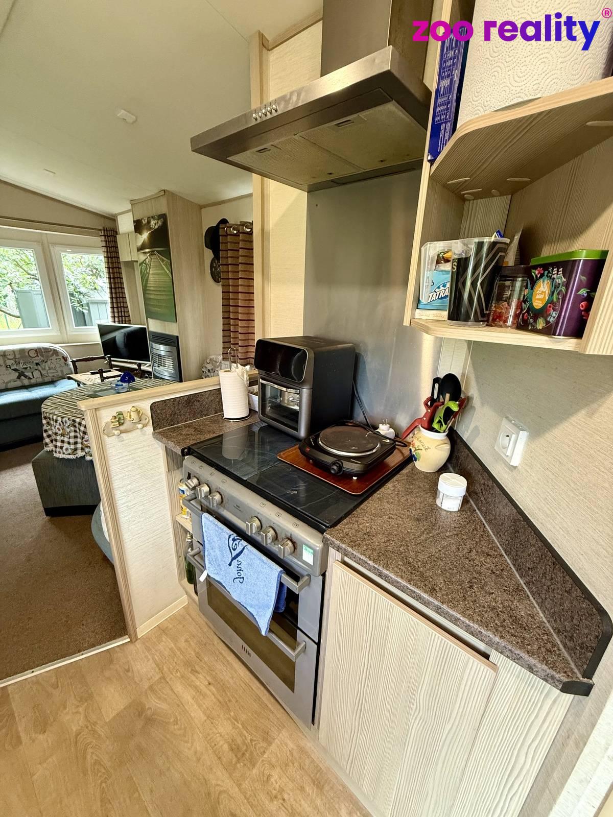 Součástí prodeje je i zateplený mobilní dům 33 m2 s kompletním vybavením. Obývací pokoj s kuchyňkou, 3 ložnice, koupelna se sprchovým koutem a toaletou.