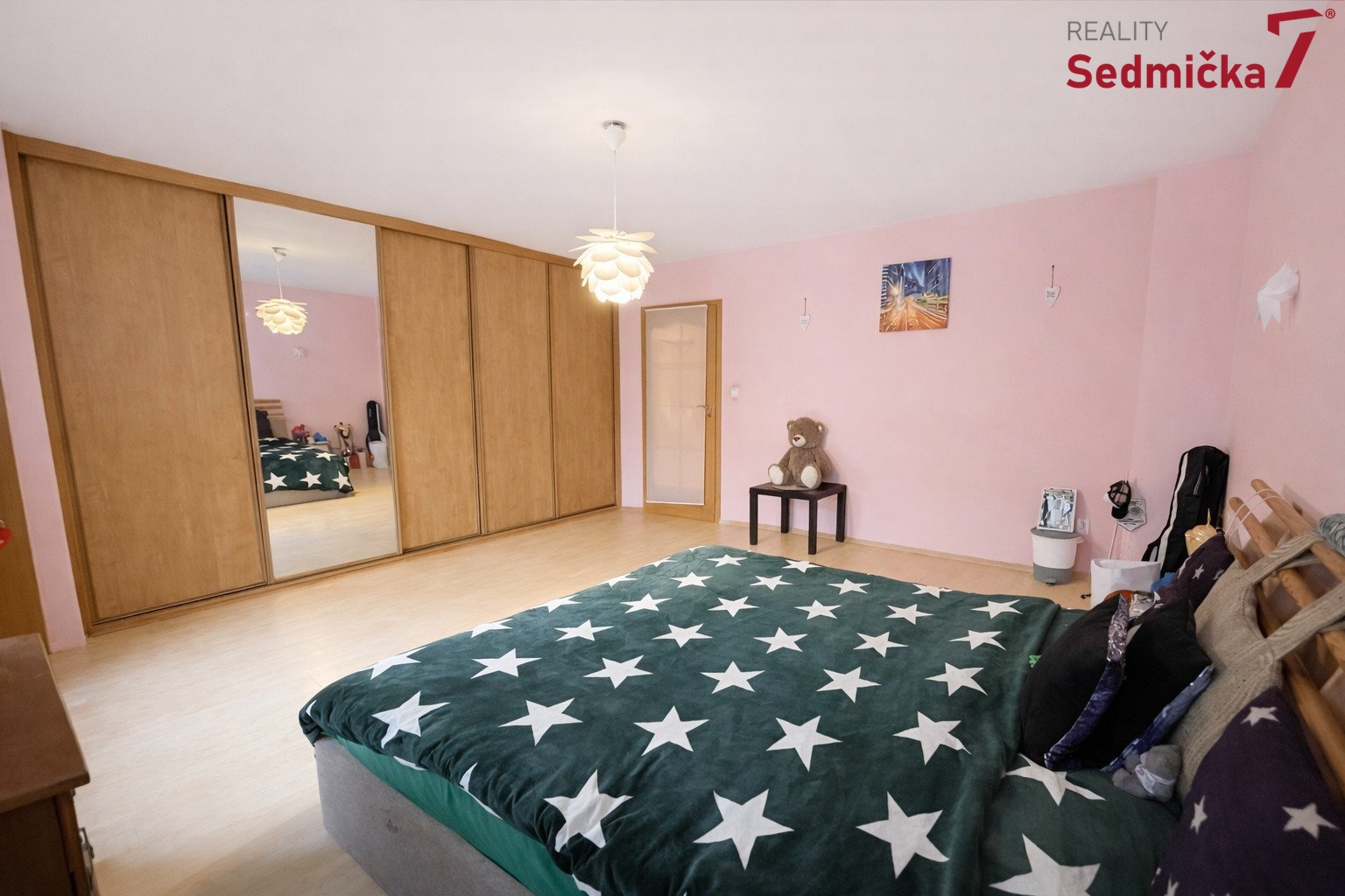 Horní podlaží otevírá centrální hala se vstupy do tří samostatných ložnic. Pokoje jsou světlé, prostorné a vhodné jako hlavní ložnice, dětské pokoje či pracovna.