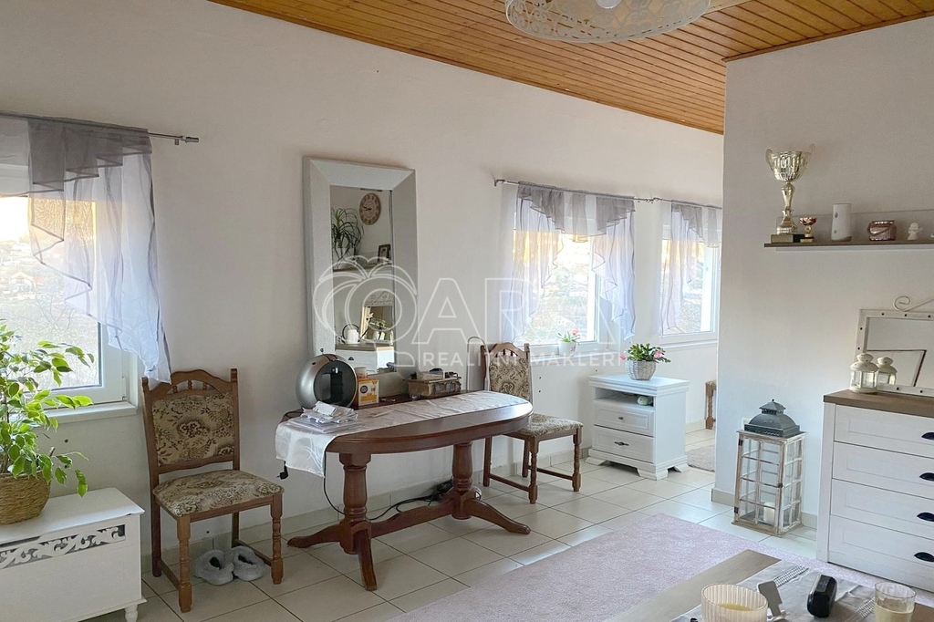 * Podkroví: půdní prostor je celý obložený dřevem (25 m2), vhodný jako úložný prostor nebo jako další pokoj.