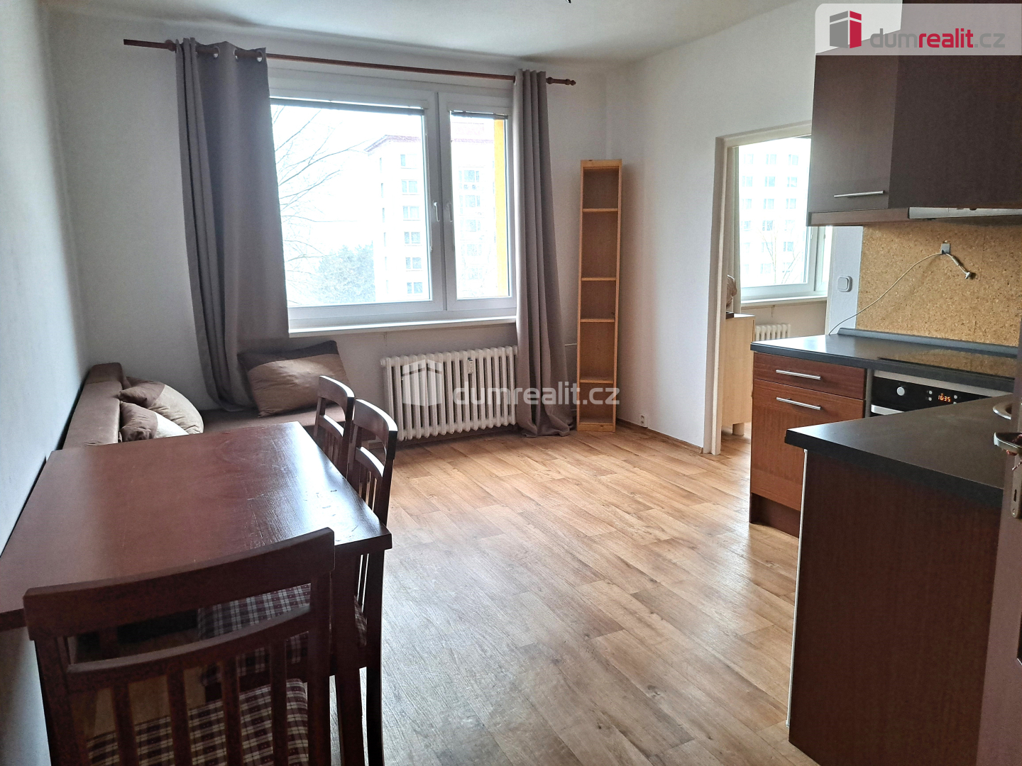 Naše společnost Vám zprostředkuje pronájem vybaveného bytu o velikosti 1+1 a celkové výměře 37,3 m² v Ústí nad Labem, Severní Terasa, ulice Šumavská. Byt se nachází ve zvýšeném přízemí zatepleného panelového domu bez výtahu. V předchozích letech proběhla v bytě rekonstrukce. Koupelna se sprchovým koutem, WC a pračkou je zděná a zvětšená. V kuchyni je elektrický sporák, lednice, mikrovlnná trouba, stůl se židlemi a menší sedačka. V druhém pokoji je umístěna postel s nočními stolky, skříň, komoda, psací stůl se židlí. Byt je světlý.