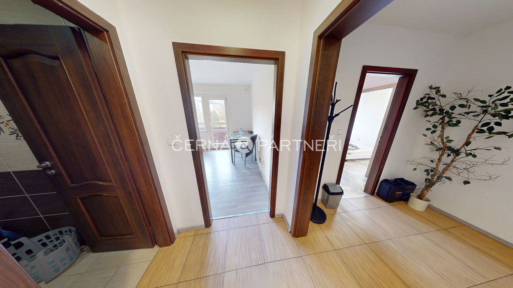 Výhodou je pohodlné parkování přímo u domu a dobrá dostupnost MHD.