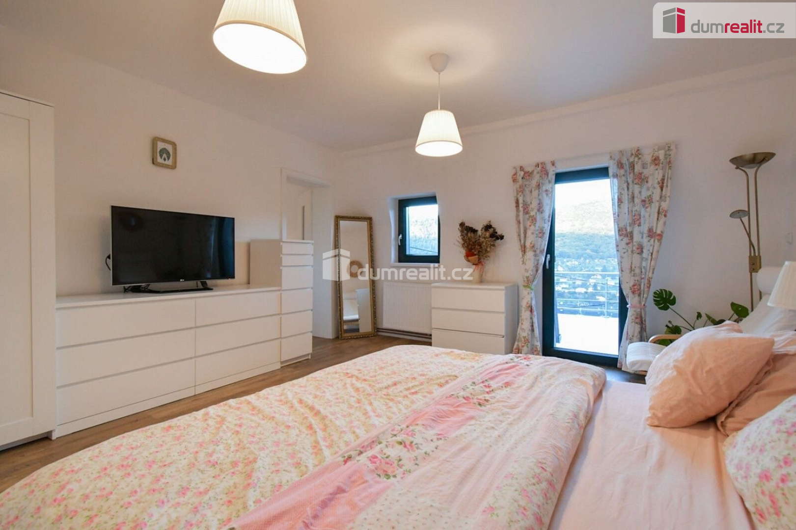 útulné ložnice s terasou s krásným výhledem na zeleň hrad Střekov a řeku Labe