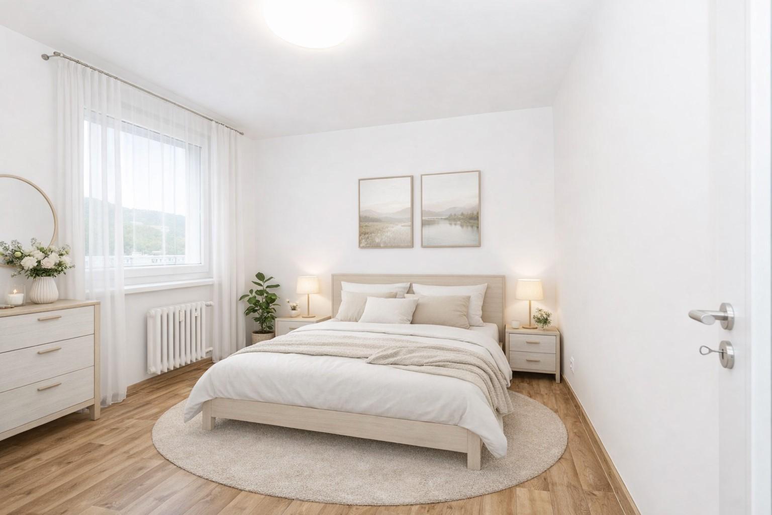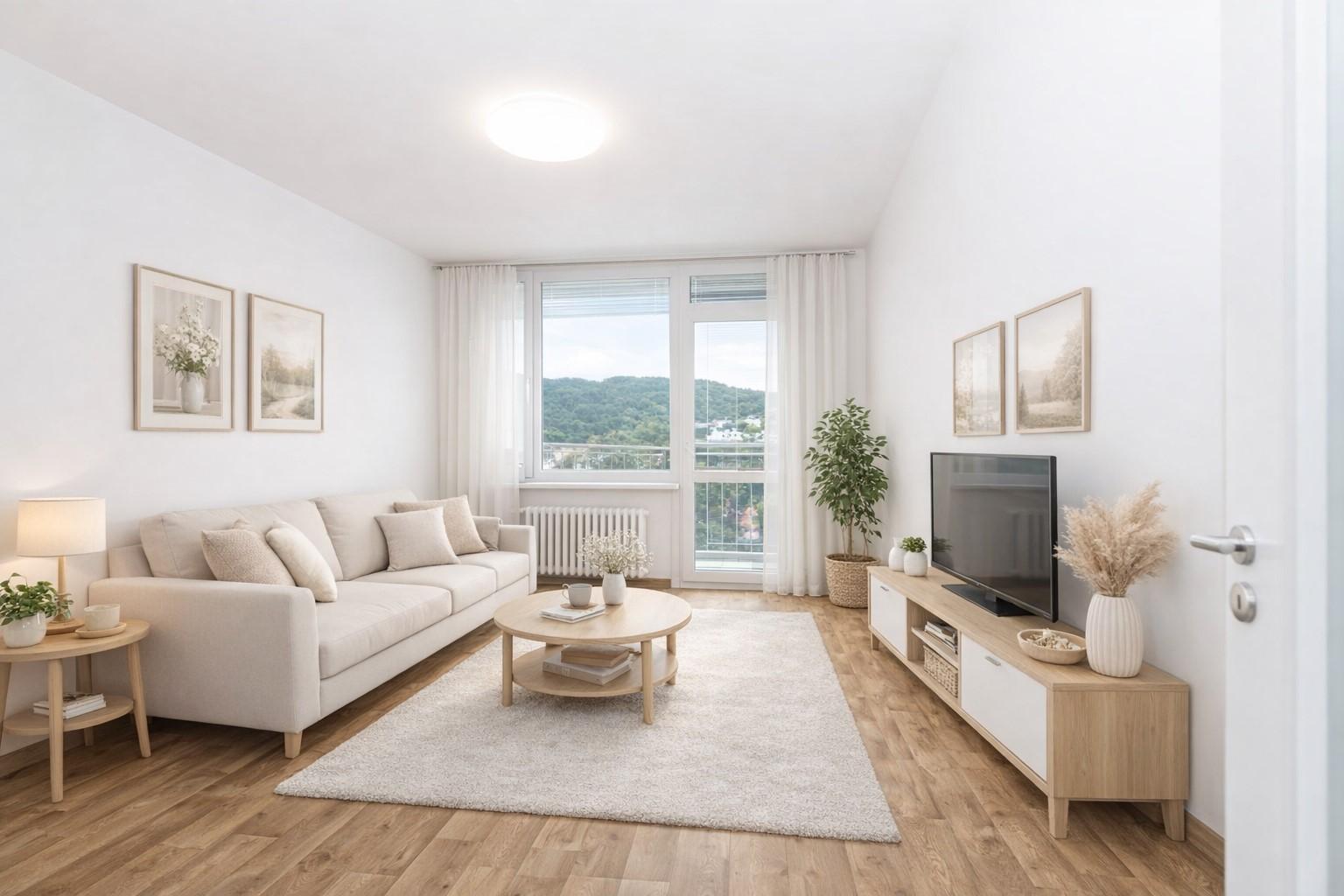 Interiér působí světlým, moderním a harmonickým dojmem.