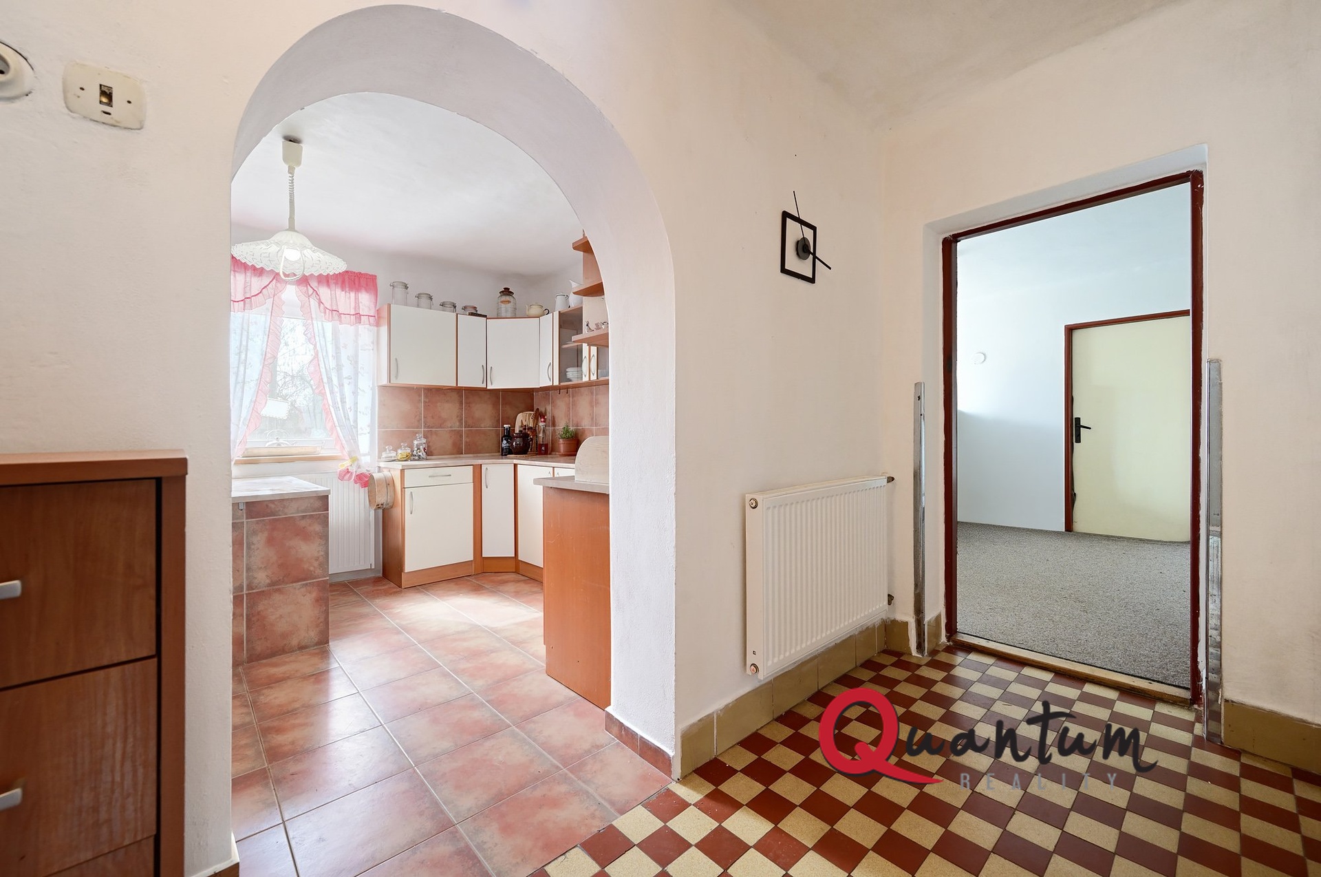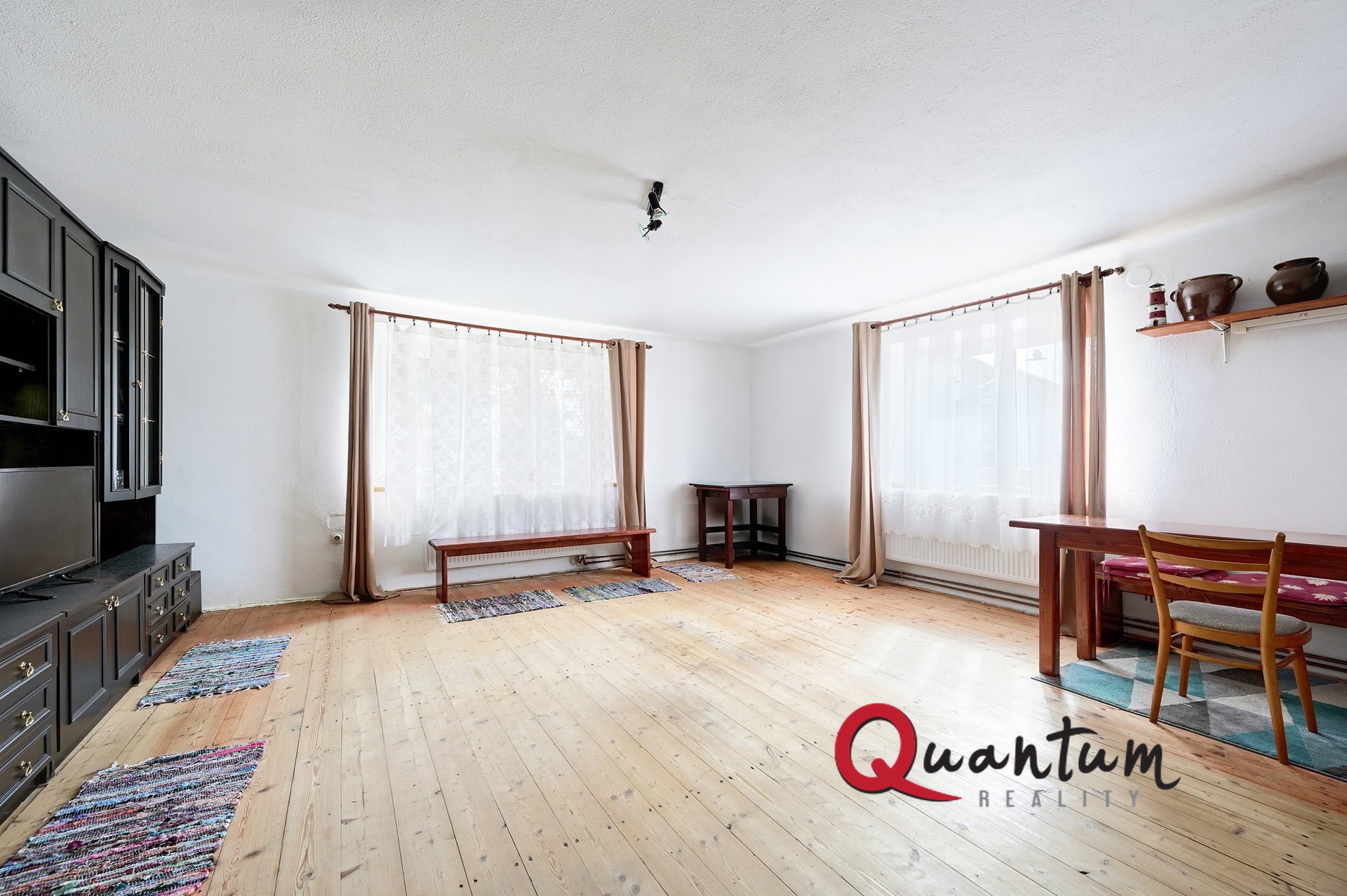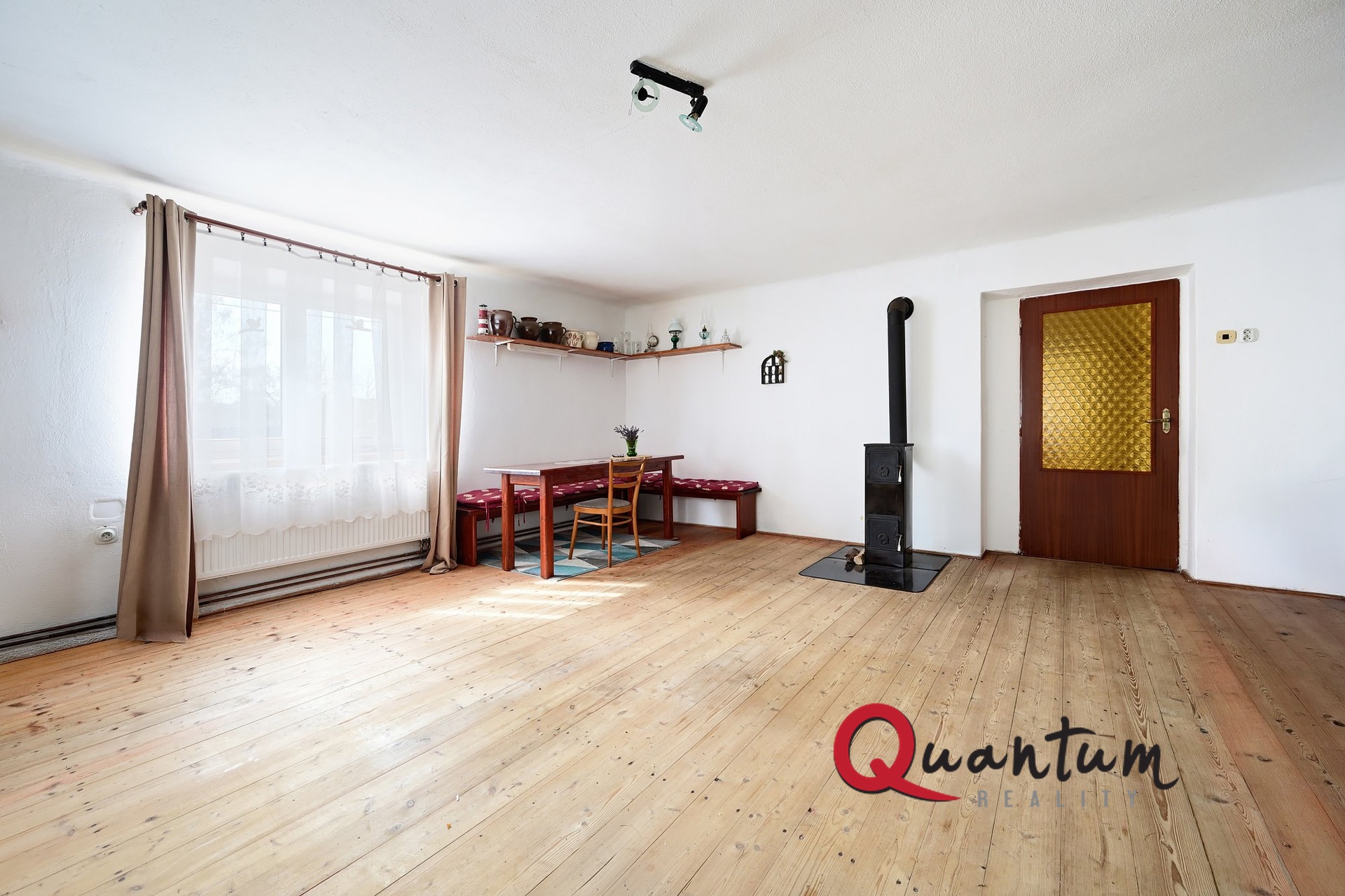 Dominantou domu je prostorný a světlý obývací pokoj s kvalitní dřevěnou podlahou a možností vytápění kamny na tuhá paliva. Na něj navazuje kuchyně s původními kamny na vaření, která dodávají prostoru jedinečný charakter, a prakticky řešenou kuchyňskou linkou. Další dva pokoje jsou průchozí, oba nadstandardně prostorné – jeden s dřevěnou podlahou, druhý s kobercem.