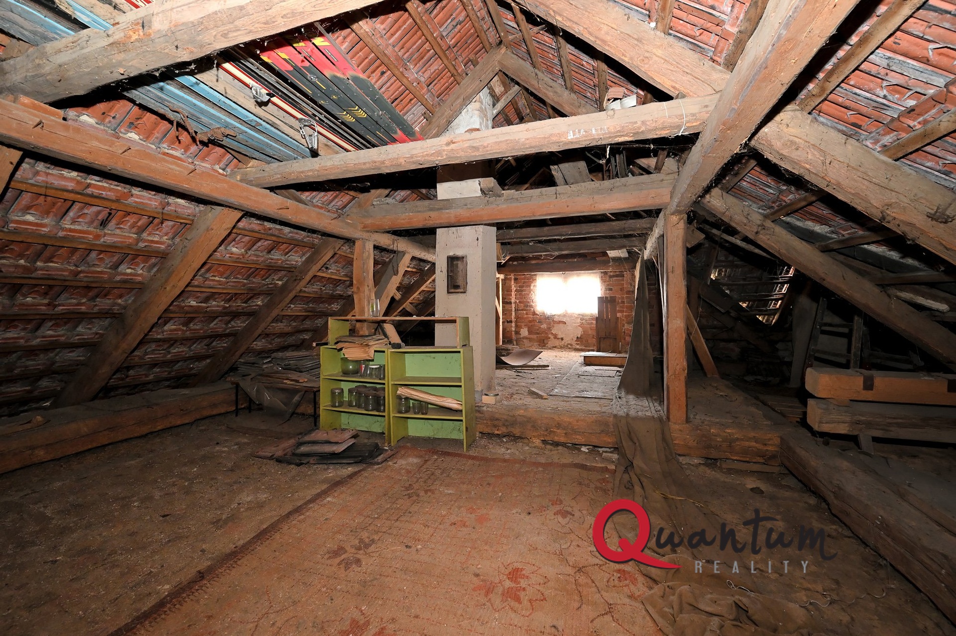 Podkroví, které zasahuje i nad hospodářskou část, nabízí kromě uvedeného pokoje také velkorysý půdní prostor vhodný k vestavbě.
