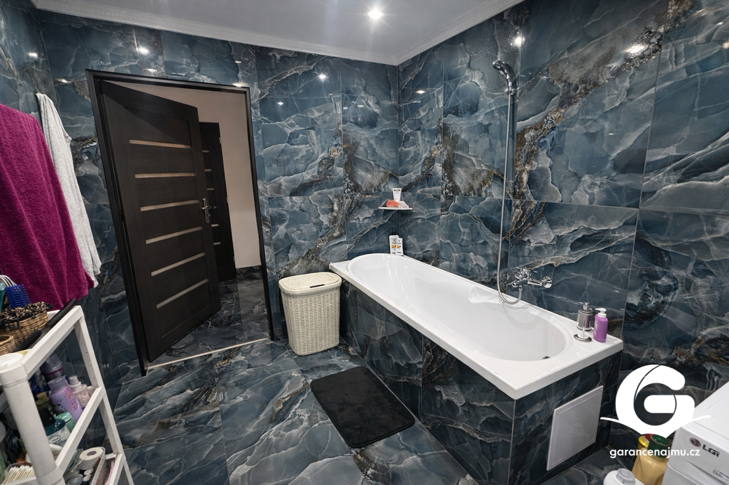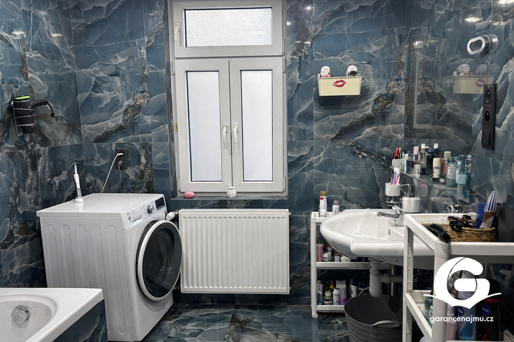 Byt má samostatnou toaletu a koupelnu s vanou. Je nabízen bez nábytku a po rekonstrukci, takže je připraven k nastěhování. Pod domem jsou k dispozici dvě parkovací místa.