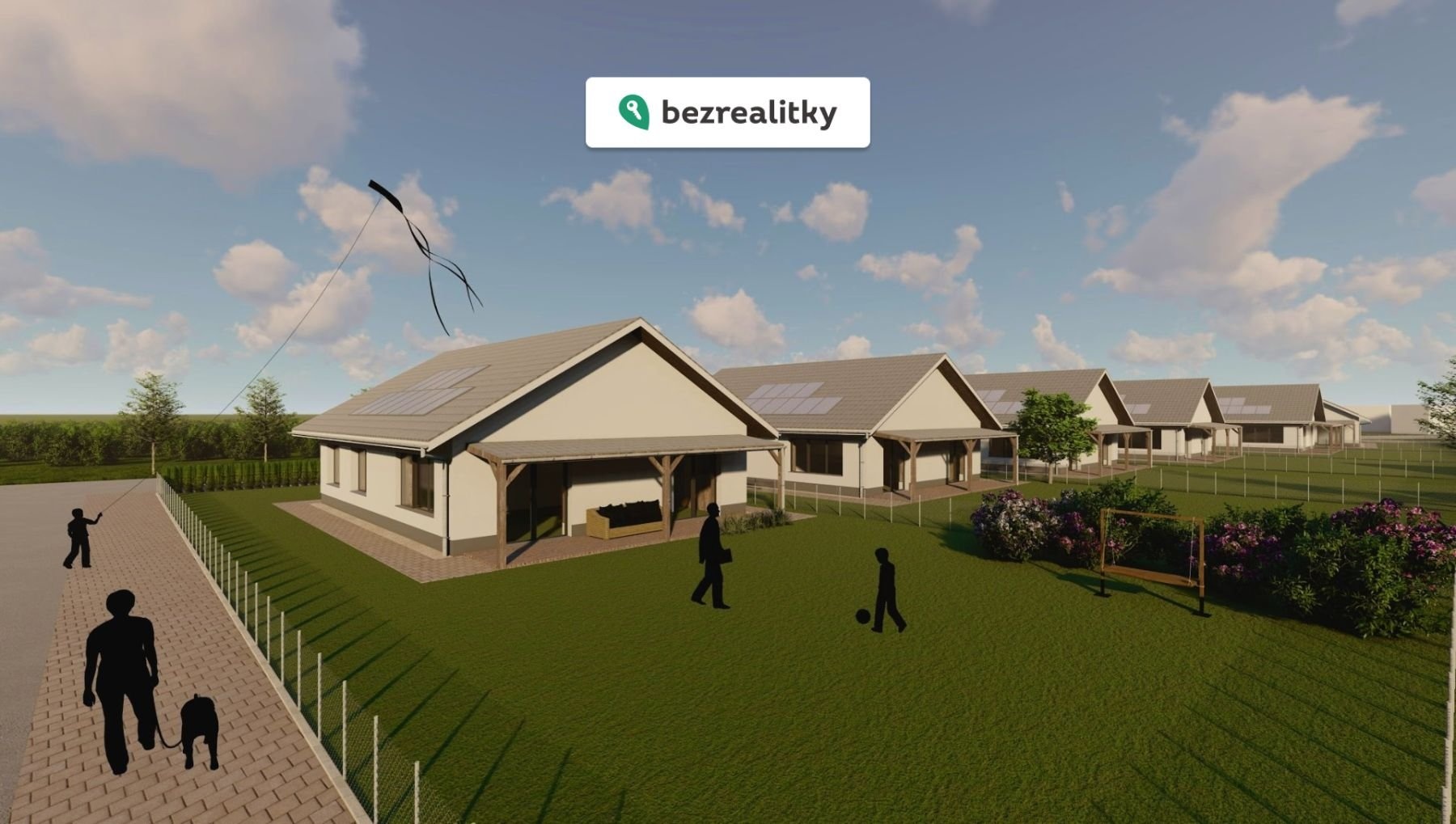 Jedná se o pozemky p.č. 464/14, 464/15, 464/16 a 464/17, k.ú. Úžice u Kralup nad Vltavou. Jednotlivé stavební pozemky jsou o rozloze cca 600m2. Navržené domy jsou samostatně stojící přízemní domy se sedlovou střechou. Dispozičně se jedná a RD 4KK s terasou a carportem. Zastavěná plocha domu je 130 m2 (viz. půdorys 1. NP), podkroví lze realizovat celé délce domu pochozí v šířce minimálně 2,5m s výškou 1,7m.