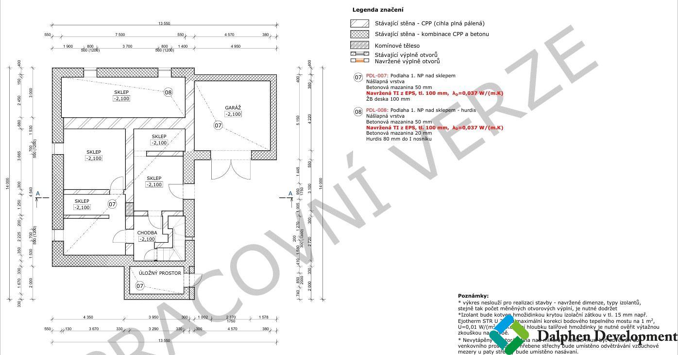 - 1.PP (RD je podsklepen: sklepy, kotelna a garáž)