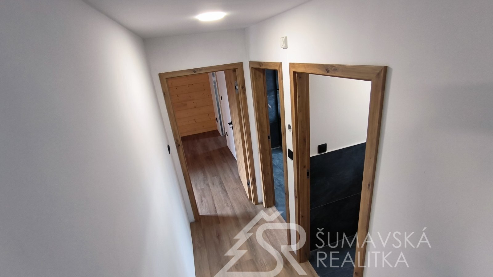 Popis nemovitosti: právě realizovaný rodinný dům je stavěný jako dřevostavba s roubenou obvodovou stěnou z lepených hranolů t.24 cm (bez sedání). Přírodní masivní dřevo je použito i uvnitř domů a vytváří tu správnou atmosféru. Dům je koncipován do tvaru „L“ s vlastní garáží na straně jedné a s velkorysým otevřeným obývacím pokojem s terasou na straně druhé. Uvnitř se nachází dvě ložnice (se šatnou), koupelna, samostatné WC, technická místnost a chodba. Pro užívání je připraveno i podkroví. Střešní krytina je Bramac Tegalit Protector, okna PVC Vekra, sanita od značek Villeroy Boch, Hans Grohe a Riho. Stavba je dokončena s použitím kvalitních standardů (podlahová krytina vinil, vypínače ABB Zoni v černé barvě a bezfalcové dveře). Stejně tak koupelny jsou voleny v materiálech a odstínech k přírodnímu dřevu. Vytápění zajišťuje tepelné čerpadlo Panasonic. Pro případného zájemce se mohou standardy upravit na přání.