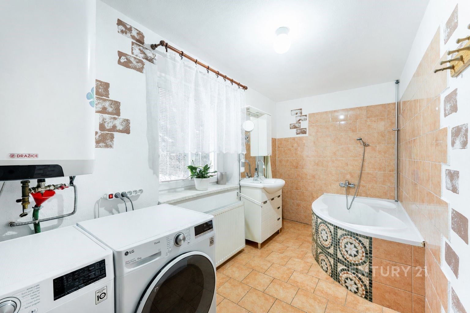 Ústřední plynové vytápění doplňují krbová kamna v obývací části, která vytvářejí příjemnou atmosféru a zároveň slouží jako úsporný alternativní zdroj tepla. Dům vyniká množstvím úložných a technických prostor, jelikož je podsklepený.