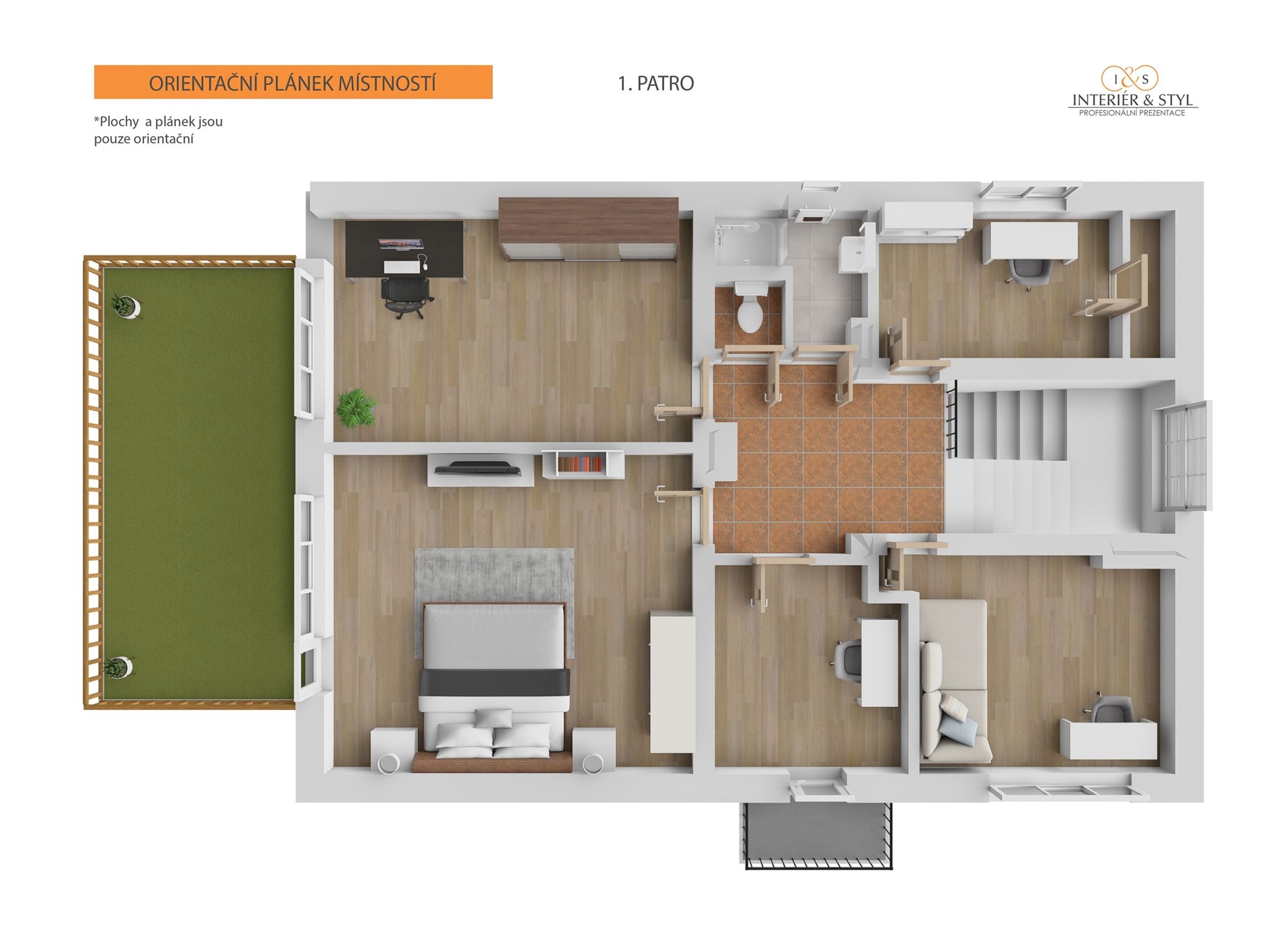 Rovinatý a kompletně oplocený pozemek o výměře 1278 m² nabízí dostatek soukromí pro odpočinek, rodinné aktivity i zahradničení.