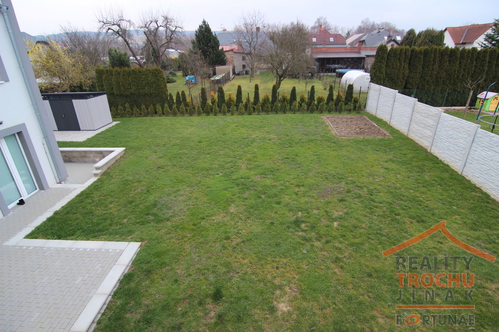 Nabízíme k prodeji dvoupodlažní novostavbu 6+kk s obytnou plochou 198 m² a terasou 27 m2 na pozemku 727 m2. V přízemí se nachází zádveří, moderně řešený, prostorný obývací pokoj s kuchyní a jídelnou. Koupelna se sprchovým koutem, 2 ložnice, spíž, technická místnost, sklad a samostatná toaleta. V patře domu koupelna s vanou, samostatná toaleta, dva pokoje, ložnice se šatnou, další šatna. Z ložnice je přístup na terasu 27,5 m². Energetická náročnost budovy „B“. Vytápění elektrické podlahové, elektrický bojler na ohřev vody. V domě je klimatizace. Datové, anténní rozvody v každé místnosti. Nádrž na dešťovou vodu. Moderní kuchyňská linka Oresi s vestavěnými spotřebiči. Lednice s mrazákem, el.trouba, el. varná deska, digestoř integrovaná, myčka, mikrovlnná trouba, led osvětlení kuchyňské linky. Regálový systém ve spíži. Vybavení nemovitosti dle dohody. Okna trojskla s horizontálními žaluziemi + sítě proti hmyzu. V ložnici ve druhém patře jsou elektrické venkovní rolety. Součástí koupelen jsou skříňky pod umyvadly, elektrické topné žebříky. PVC podlahy jsou v celém domě mimo koupelen a WC, kde jsou keramické dlaždice s obklady. Dům je osazen moderními úspornými led světly. Na pozemku je zahradní domek 3,4 x 2,2. Zpevněné plochy kolem celého domu. El.brána na dálkové ovládání + el.branka s video zvonkem. Celý pozemek je kompletně oplocený. Kolaudace 2022. K nastěhování dle domluvy. Doporučujeme, financování zajistíme.