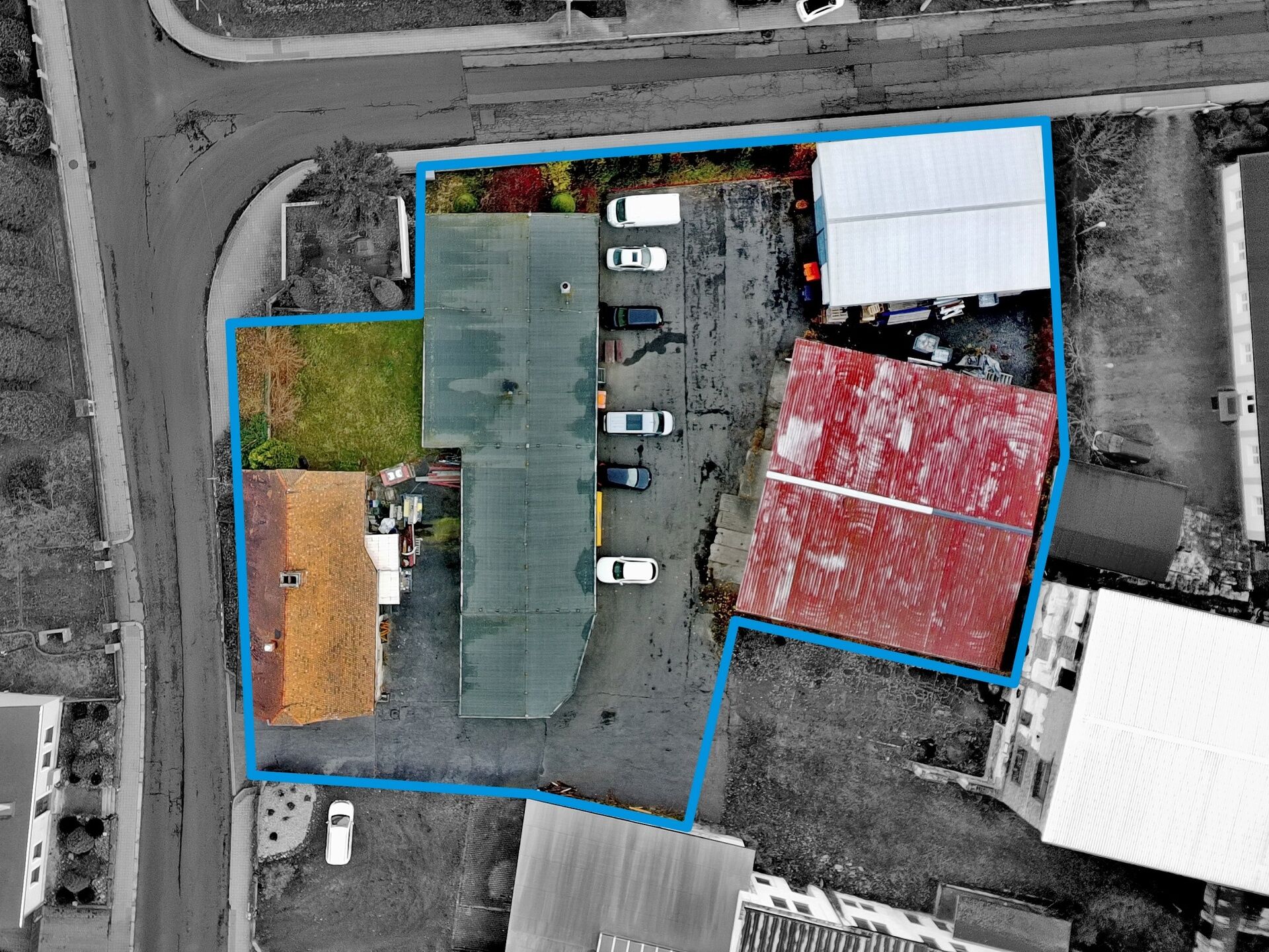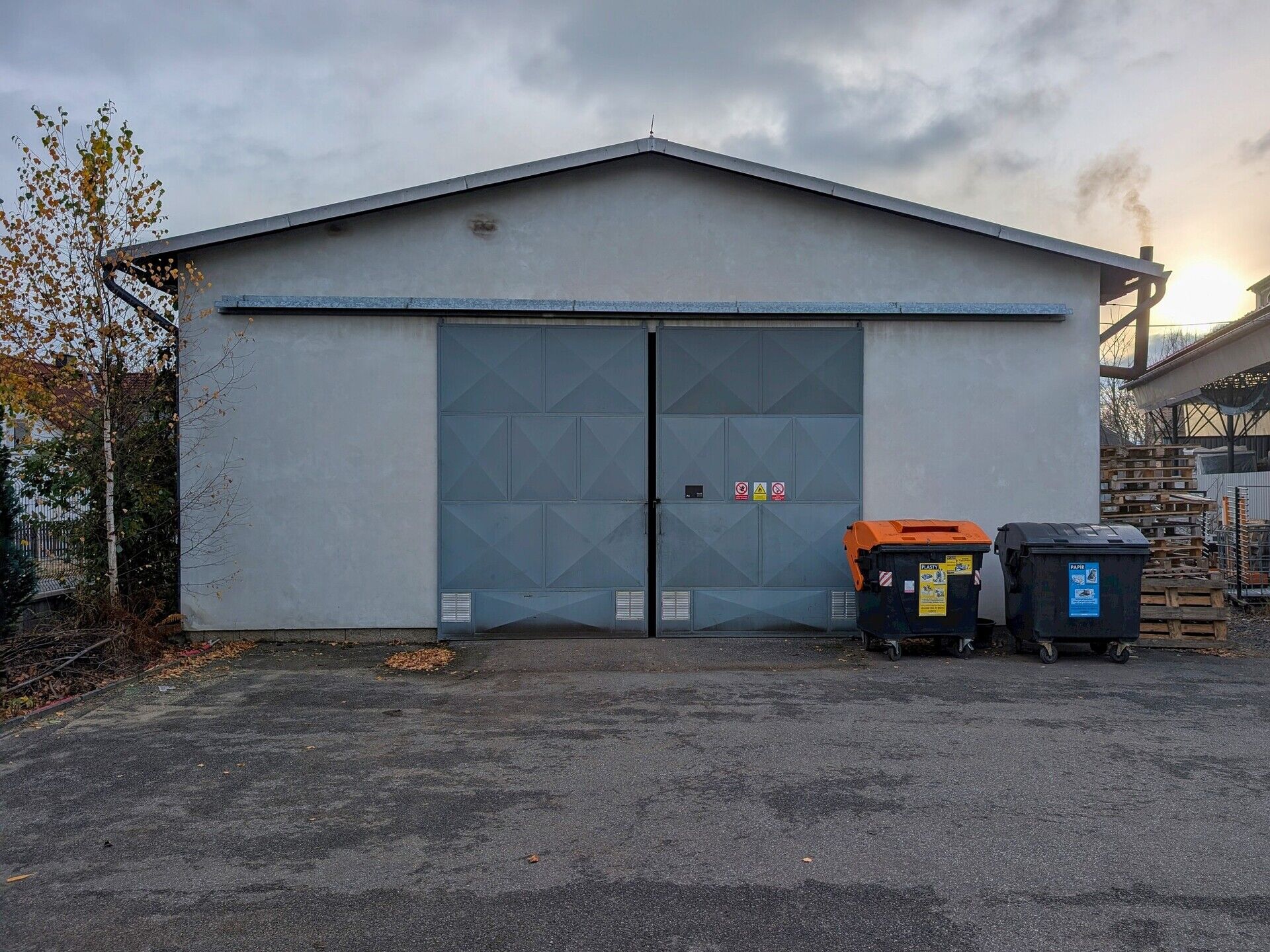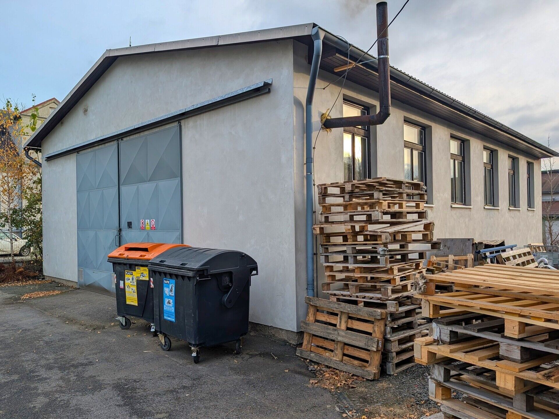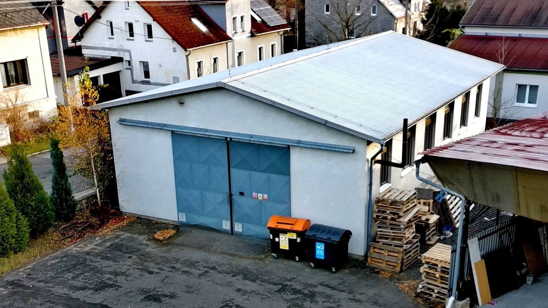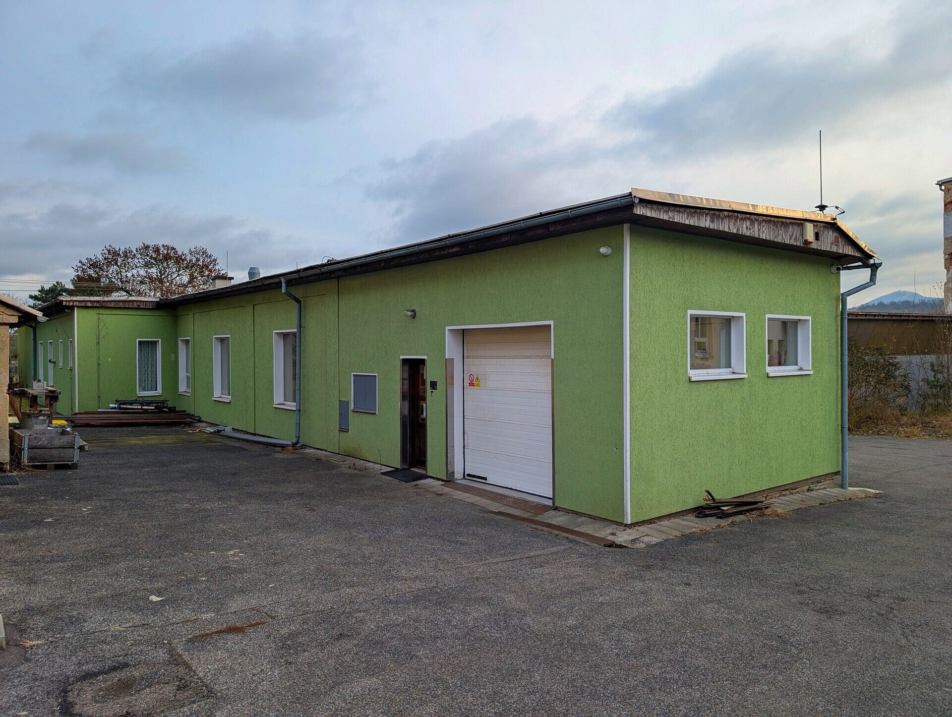 - Vstupy: Sekční vrata (2,4 x 2,5 m) + několikery dveře.