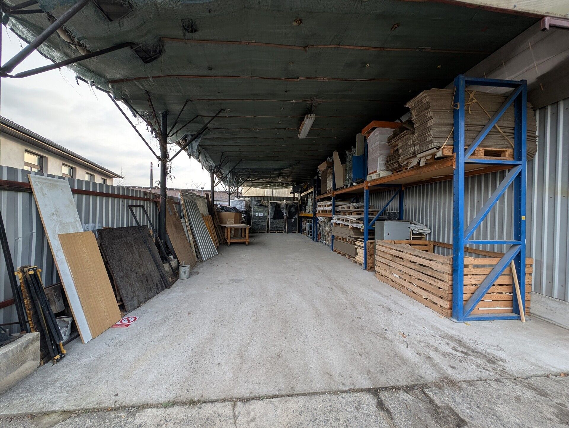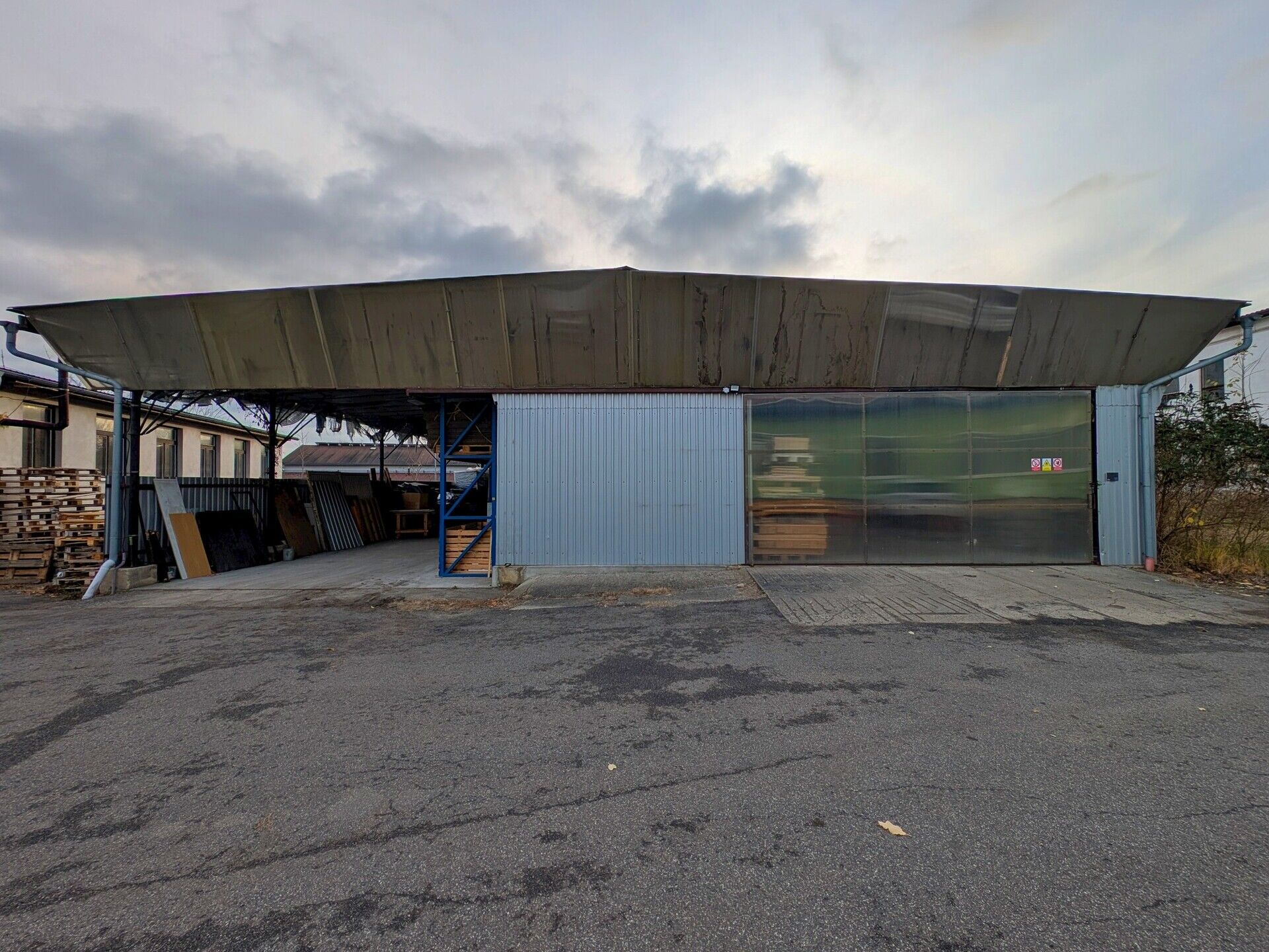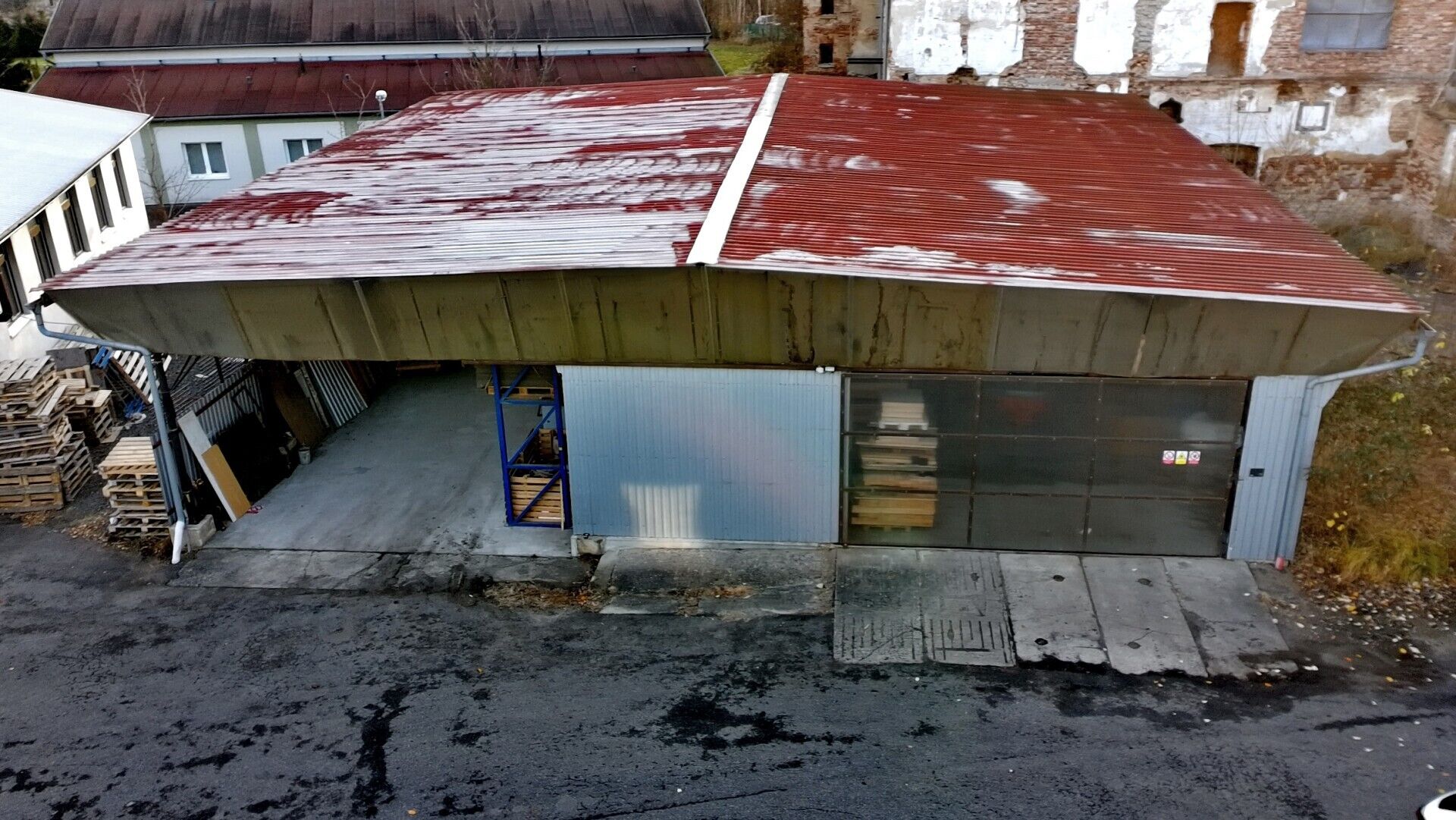 - 60 % plochy tvoří uzavřený sklad opláštěný trapézovým plechem.