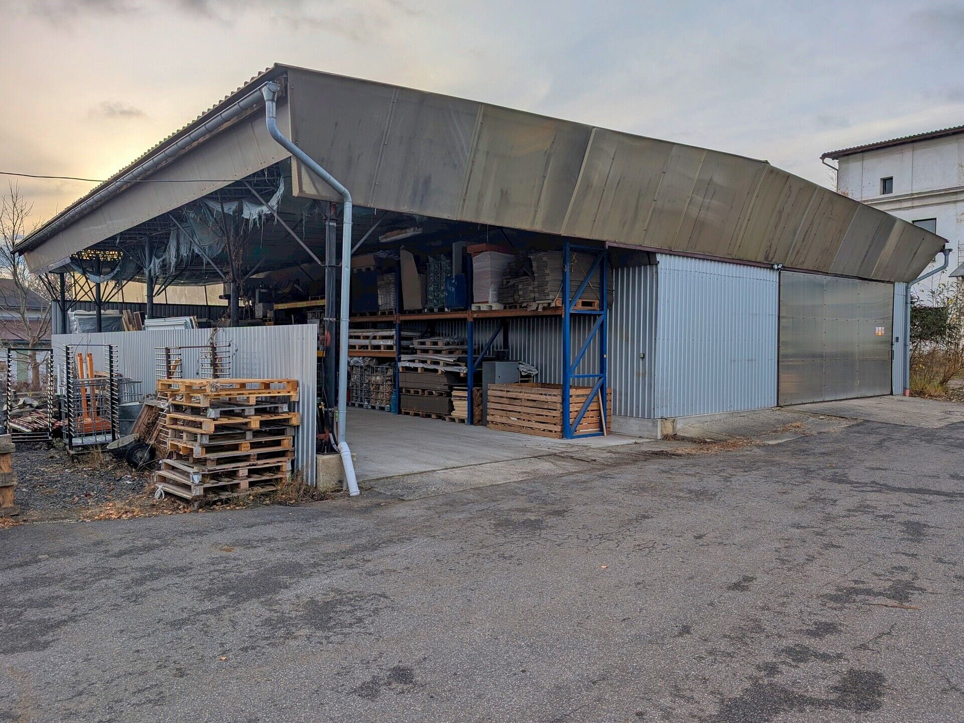 - Zbytek slouží jako otevřený přístřešek s regály.