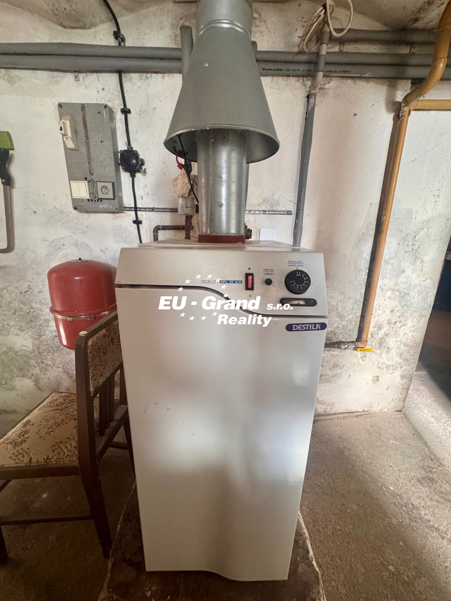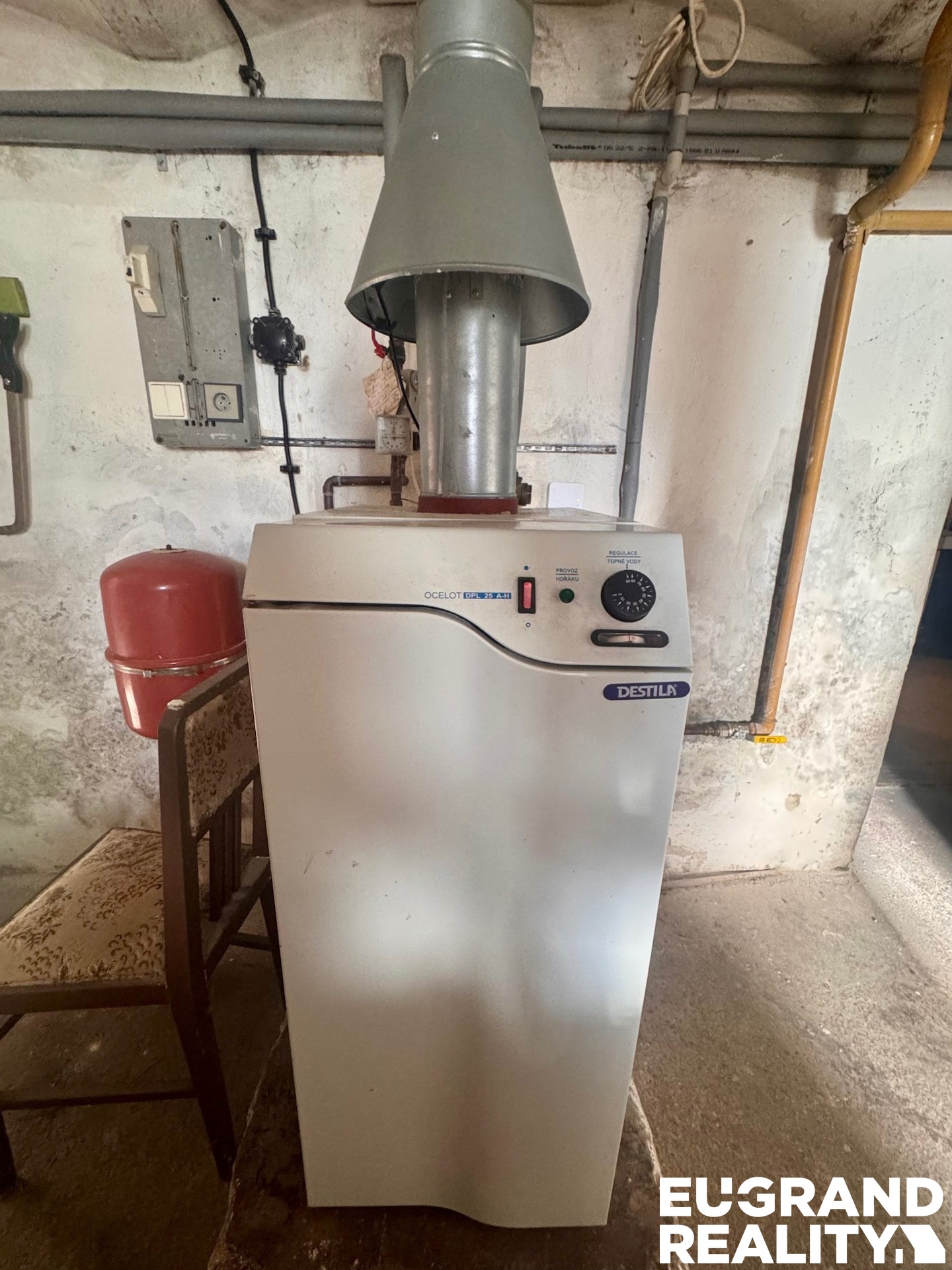 Topení je řešeno plynovým kotlem, rozvody v mědi.