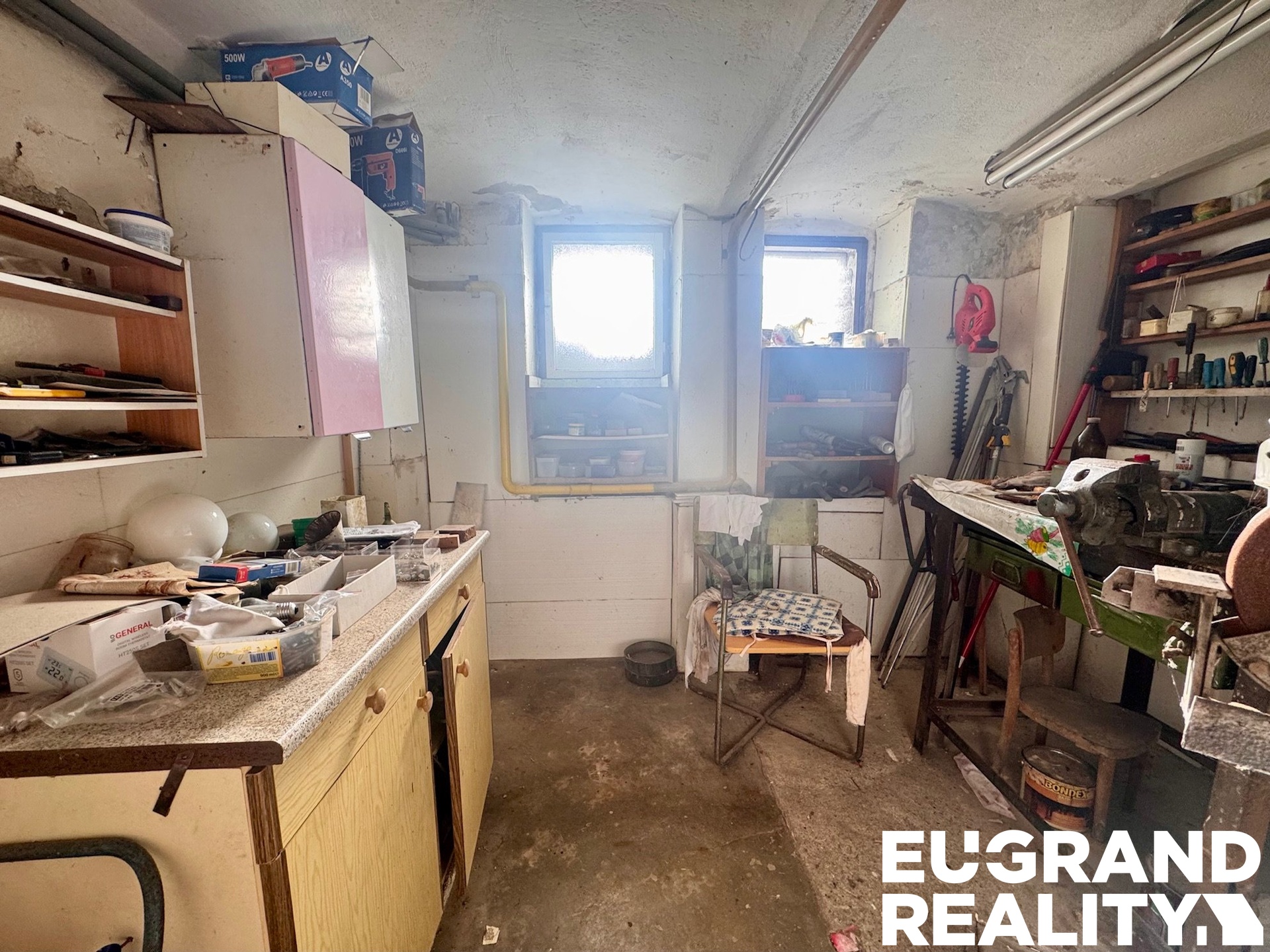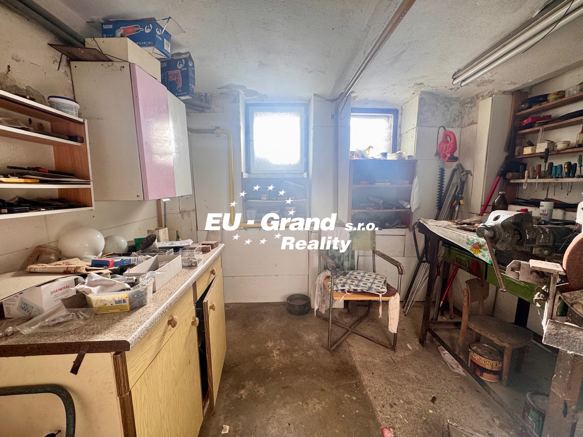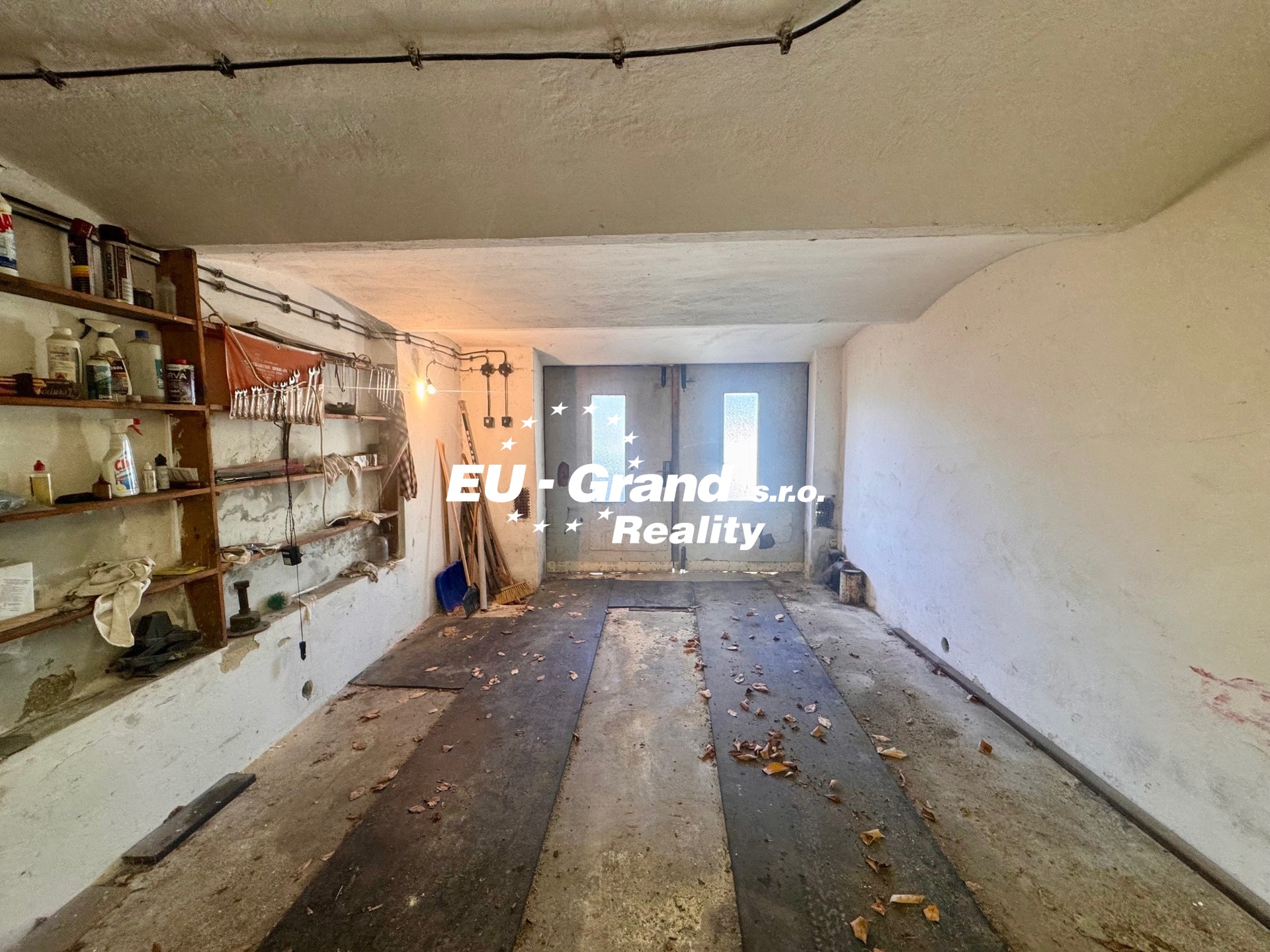 Sklep: členitý, celý podsklepený prostor s garáží.