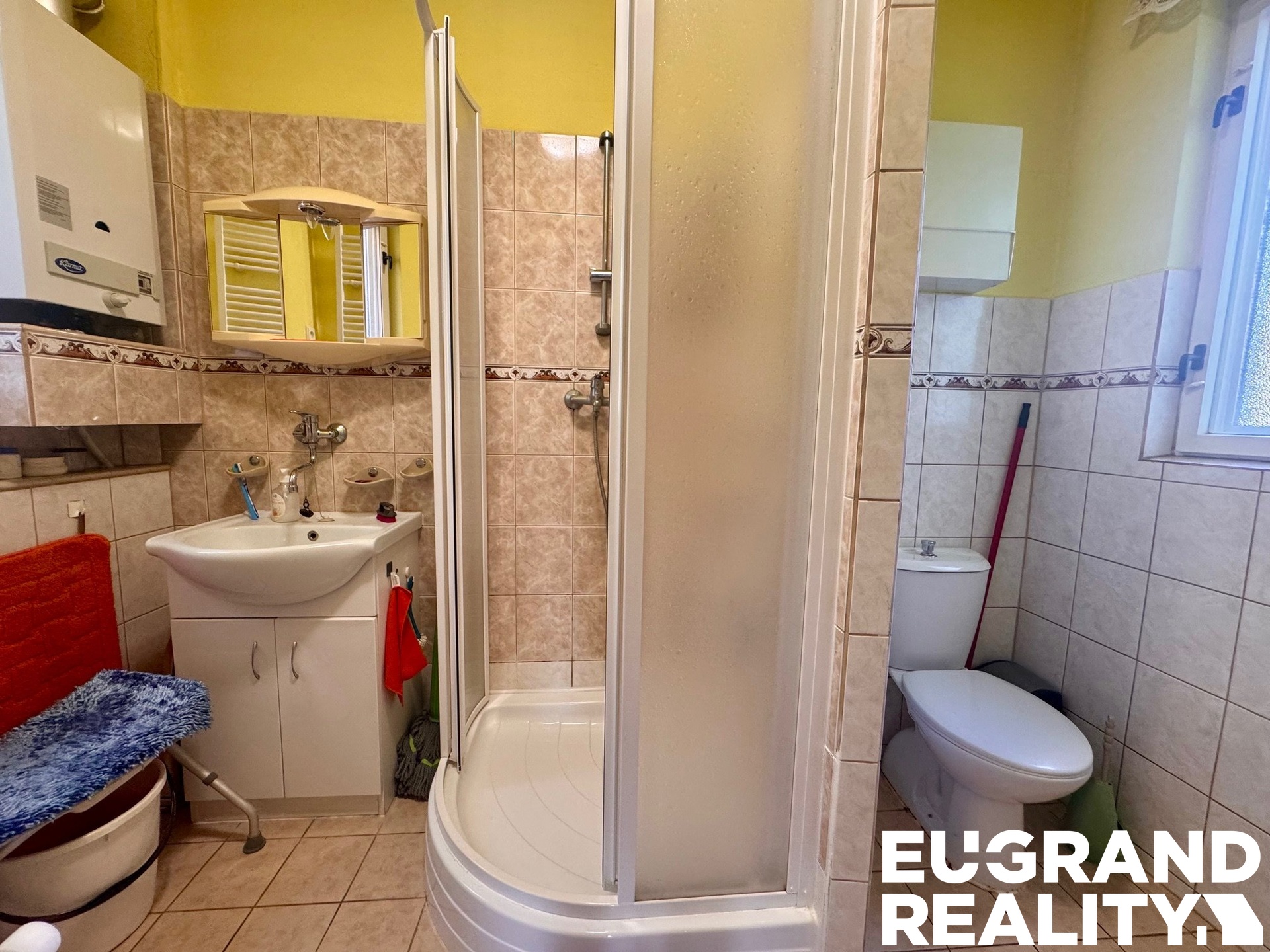 Voda obecní (plastové rozvody), odpad sveden do kanalizace, navíc je k dispozici i septik.