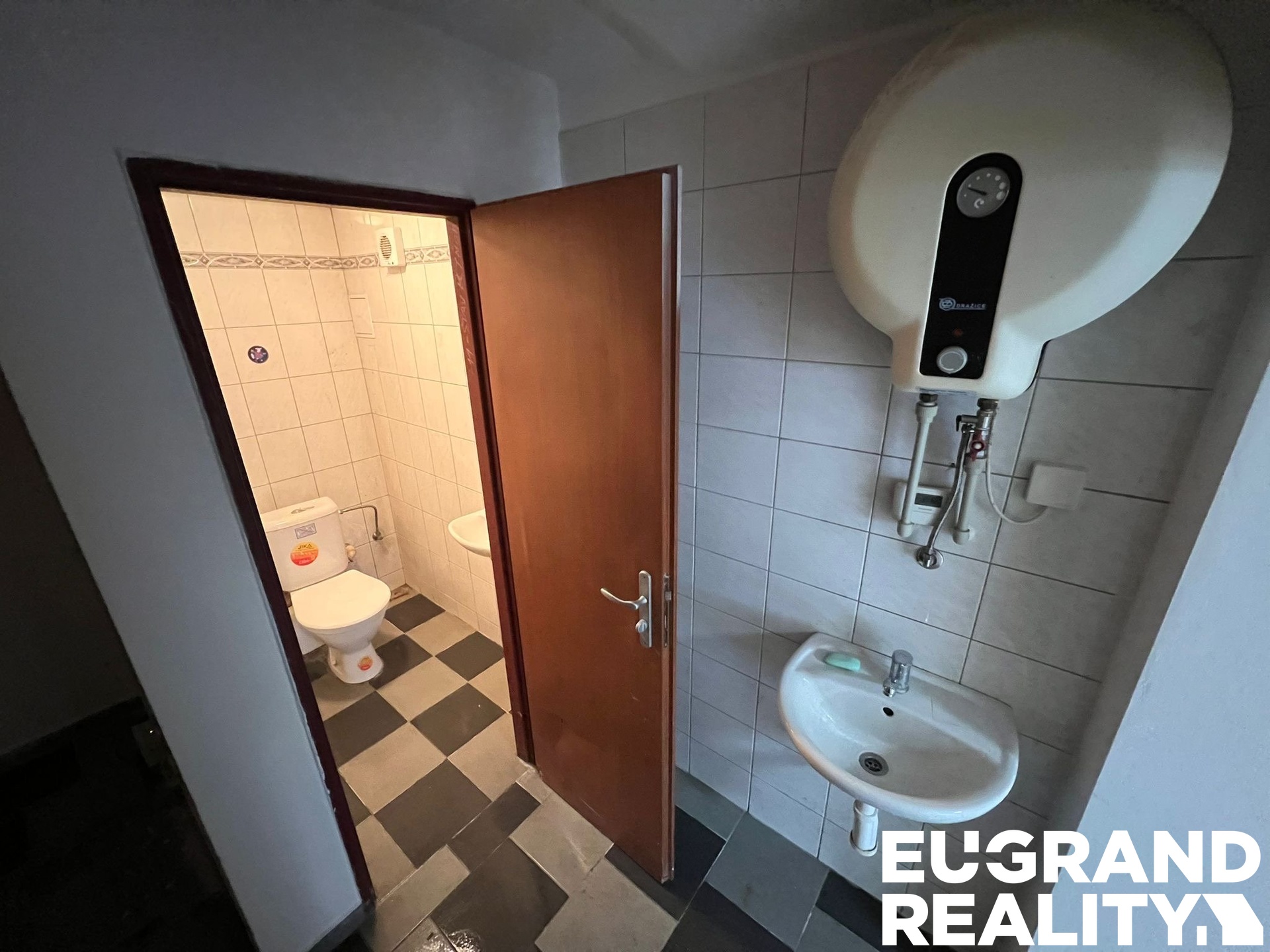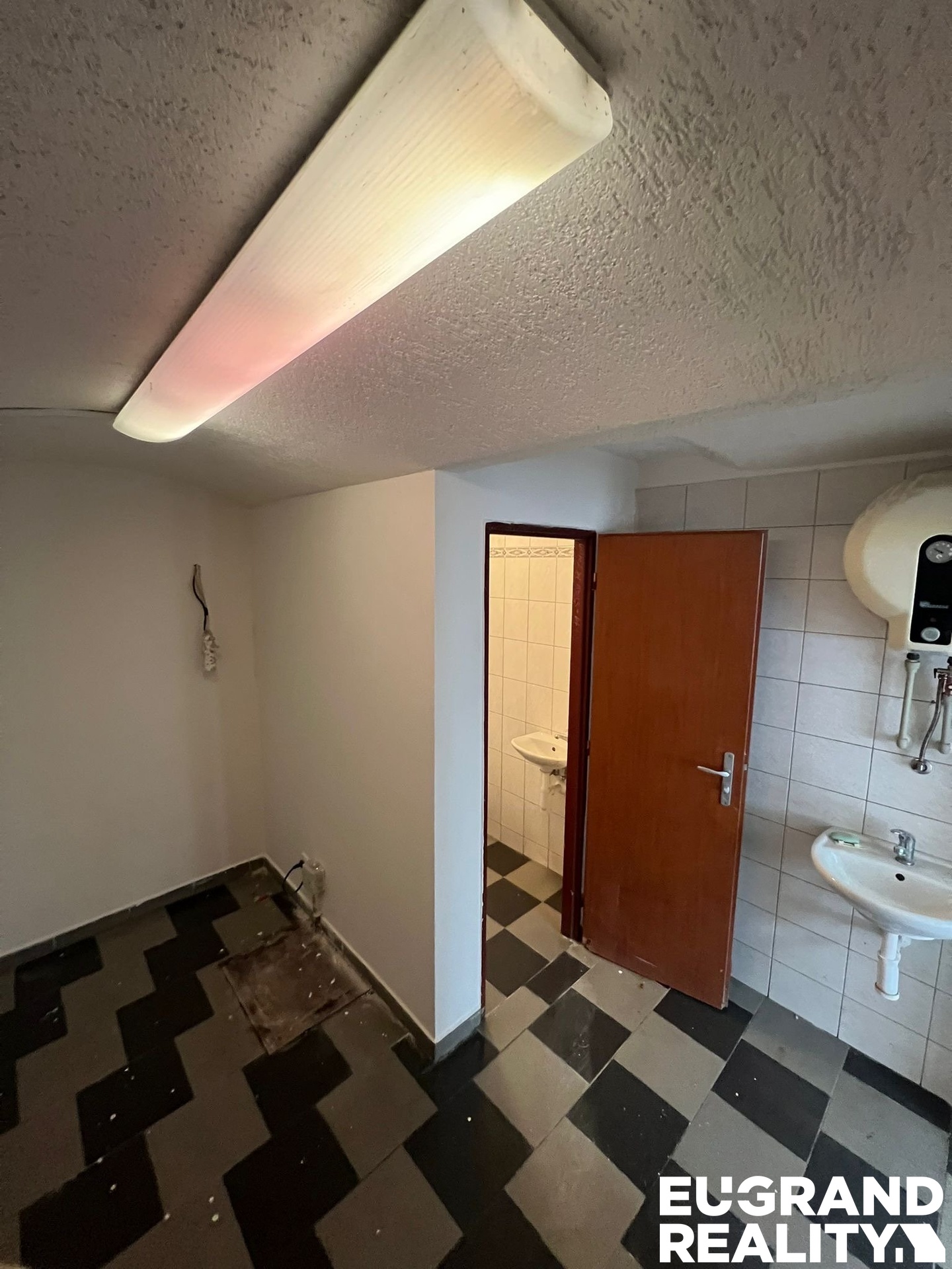 Hlavní otevřený prostor s dostatkem místa pro prodejní či pracovní zónu, sociální zázemí (toaleta + umyvadlo), menší samostatná místnost vhodná jako sklad, kancelář či zázemí.