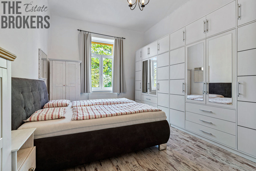 Dvě bytové jednotky nabízejí možnosti dispozice 3+1 a 3+1/kk. První patro, rekonstruované s šarmem historie, kontrastuje s novostavbou ve druhém patře, která dosud nebyla naplno využita.