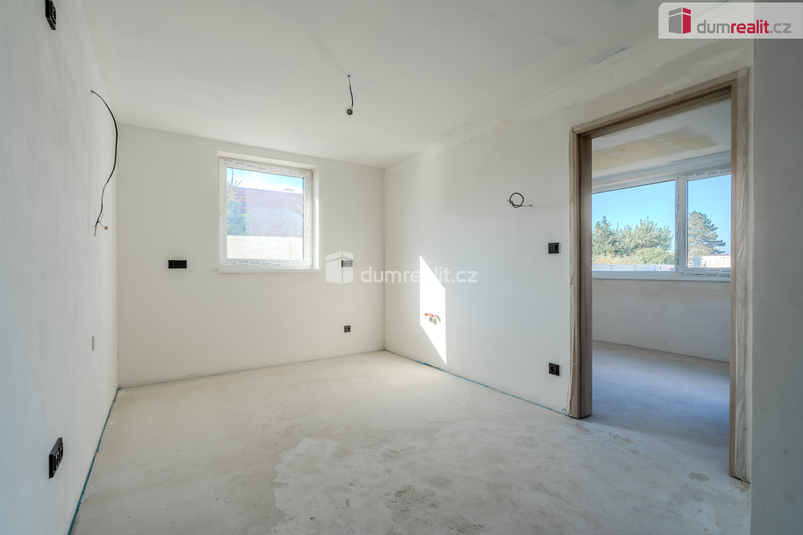Koupelna a oddělené WC jsou již připraveny k užívání. V koupelně není nutné se střídat, protože díky dvěma umyvadlům, vanou s masážní tryskou a vyzděným sprchovým koutem ji můžete využívat s více členy domácnosti. Je zde i prostor pro pračku a sušičku a umístěný úsporný kombinovaný plynový kotel s částečným podlahovým topením.