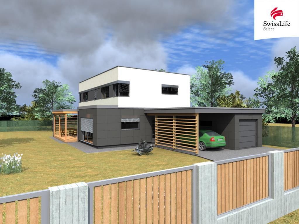 Uvedená cena je za čistou podlahovou plochu domu (160 m2) tedy bez garáže a zastřešeného parkovacího stání. Lze, dle přání, projekt upravit a garáž nebo parkovací stání dodělat.