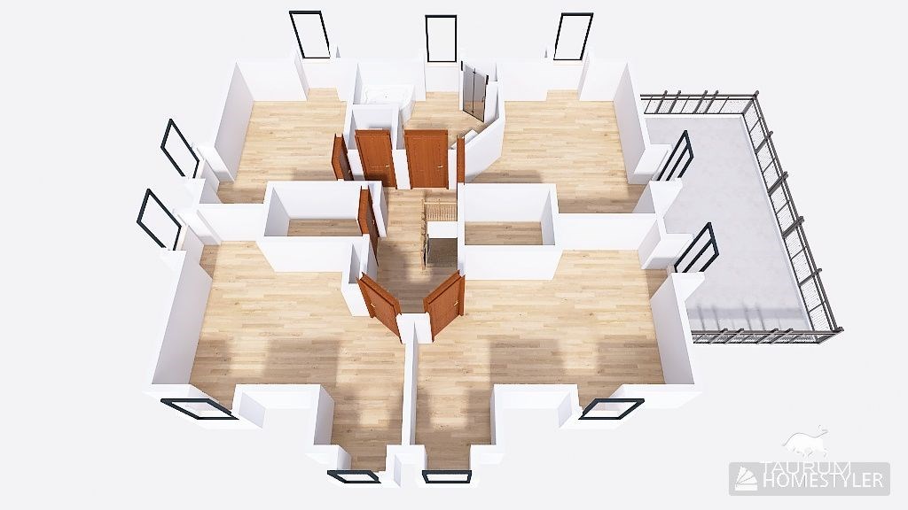 Starší, dvoupodlažní, o výměře 202 m² a dispozici 6+kk. Dominantou je prosvětlený obývací pokoj s napojením na jídelnu a kuchyň a přímým vstupem na venkovní terasu. V přízemí se dále nachází předsíň, vstupní hala, toaleta, spíž a pracovna. V 1. patře se pak nachází 4 pokoje, šatna, koupelna s masážní vanou a sprchovým koutem, samostatná toaleta, šatna a terasa. Z chodby 1. patra je vstup na půdní prostory. Díky své velikosti poskytuje dům nadstandardní prostor pro pohodlné bydlení.