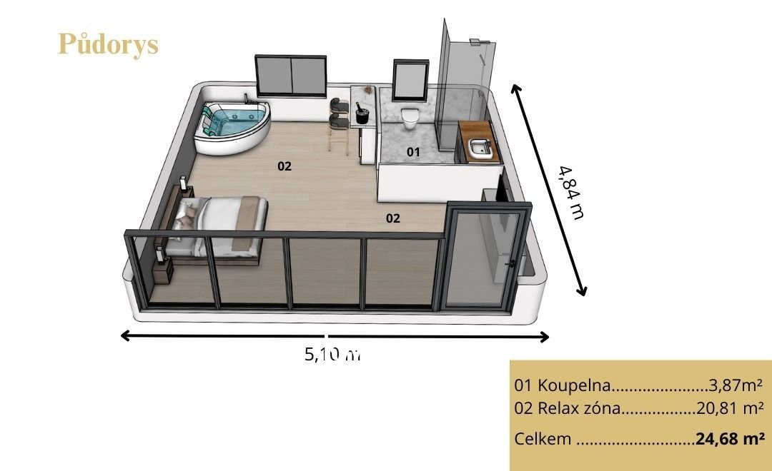 Moderní, mobilní dům 1+kk/2+kk s užitnou plochou 24,7 m2. Velmi zajímavý mobilní dům, který můžete využít jako víkendovou chatu, k trvalému bydlení, či krátkodobému podnikání.