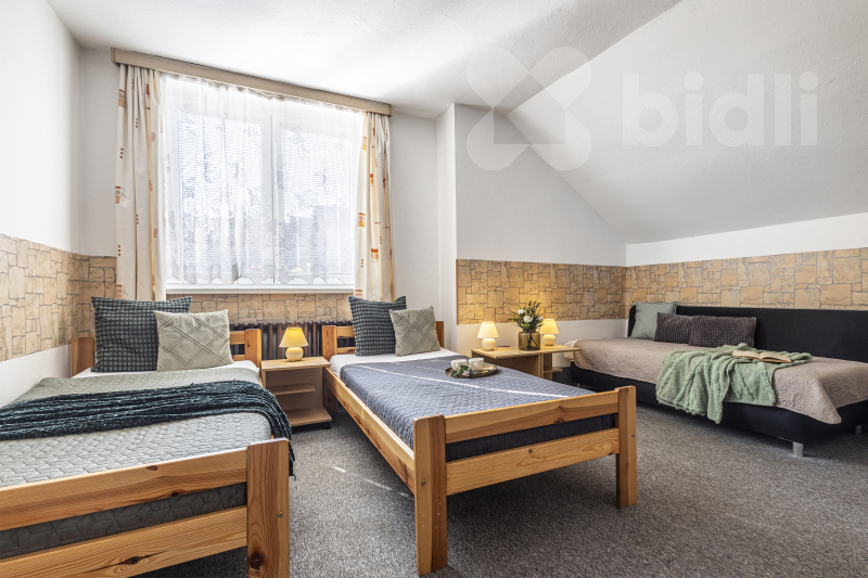 Uvnitř najdete pět komfortních pokojů a velkokapacitní kuchyni, kterou lze snadno modernizovat pro rodinné potřeby. Velkým bonusem je opravdu velká terasa, ideální pro odpočinek a grilování. Do budoucna je zde i možnost vybudovat menší zahradu.