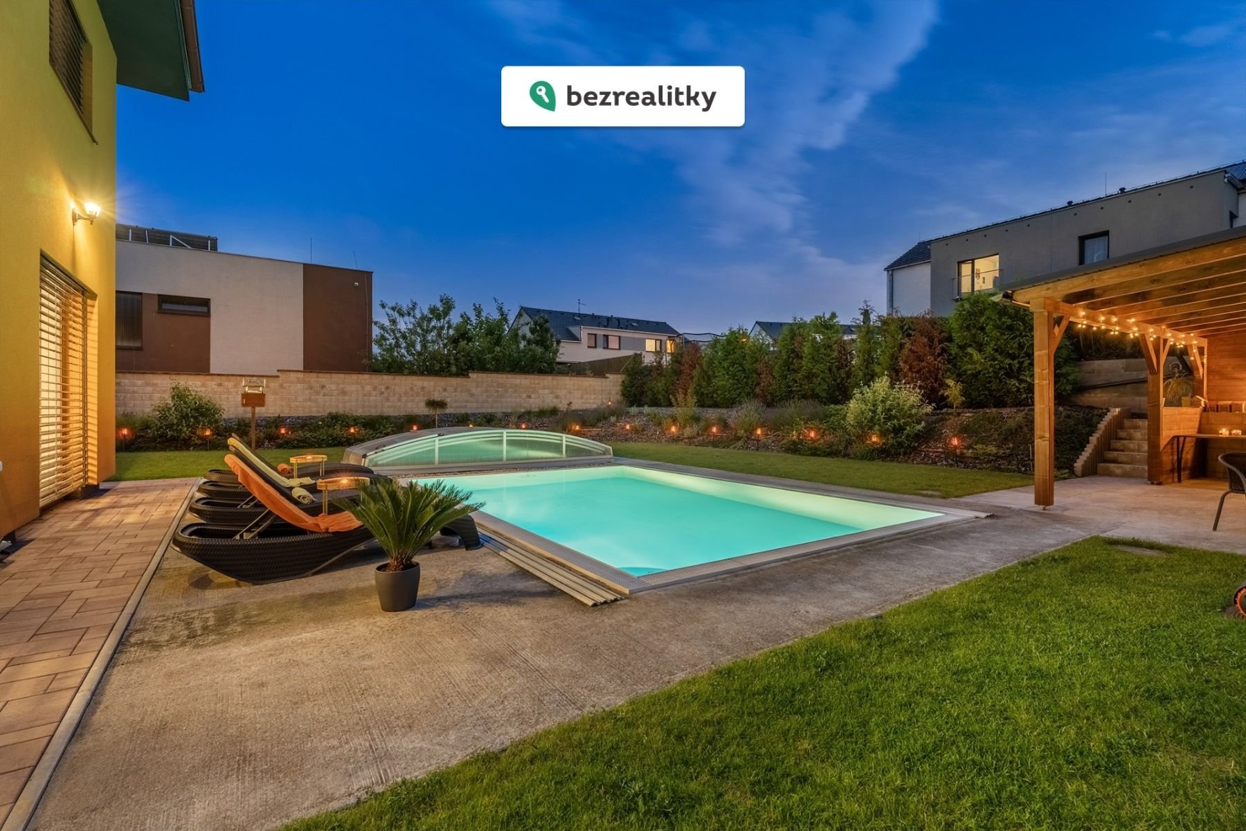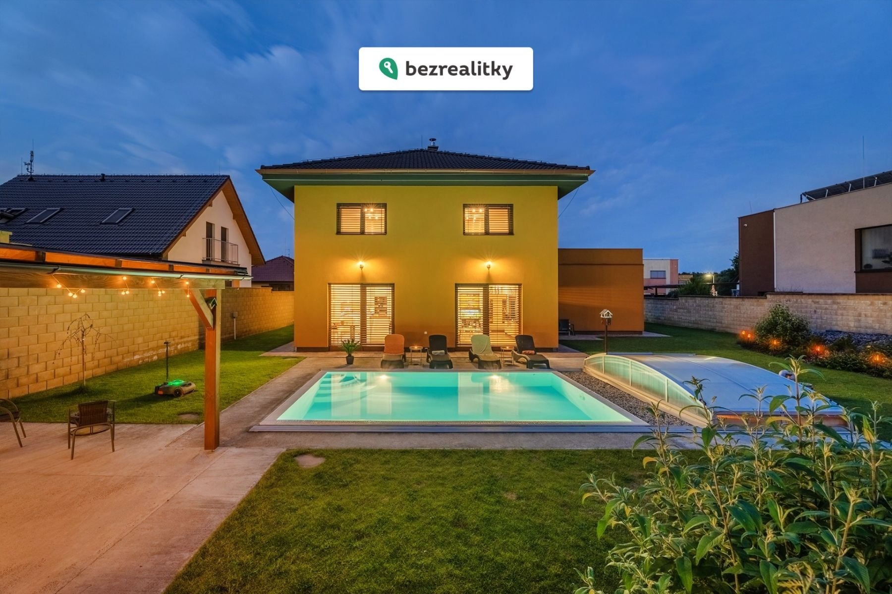 Máte tady úplně vše: VNITŘNÍ WELLNESS (vířivka se slanou vodou, finská sauna, sprchy, relax zóna), VENKOVNÍ KRYTÝ BAZÉN (přeliv, vyhřívaný, slaná voda, protiproud, osvětlení), DVOJGARÁŽ 42 m2, TERASA NAD GARÁŽÍ 42 m2, TERASA U BAZÉNU CCA 34 m2, PERGOLA CCA 39 m2, OBROVSKÁ PŮDA, VENKOVNÍ ELEKTRICKÉ ŽALUZIE, OKRASNÉ STROMY A KEŘE, AUTOMATICKÁ ZÁVLAHA, ROBOTICKÁ SEKAČKA, CENTRÁLNÍ VYSAVAČ, BOJLER NA 200L, TEPELNÉ ČERPADLO, PODLAHOVÉ VYTÁPĚNÍ, KRB, RETENČNÍ NÁDRŽ, VINOTÉKA, 2x LEDNICE, 3x WC, 3x UMYVADLO + DŘEZ, ŠATNA, PODSVÍCENÉ DUBOVÉ SCHODIŠTĚ, VELKOFORMÁTOVÉ OBKLADY A DLAŽBY, LUXUSNÍ SANITA, VINYLOVÁ PODLAHA HYDRO/CORK, OKNA BEZPEČNOSTNÍ TROJSKLA ATD.
