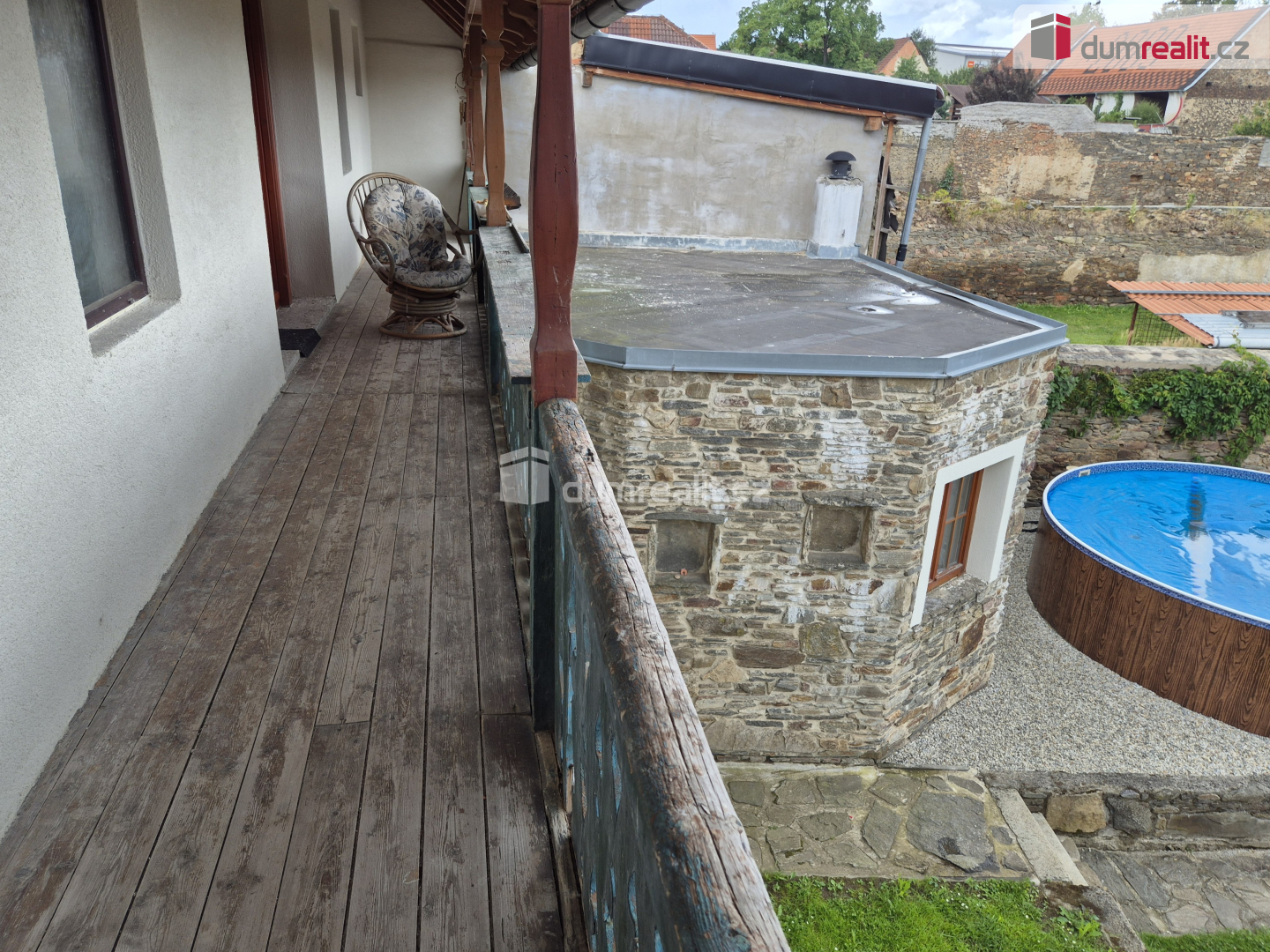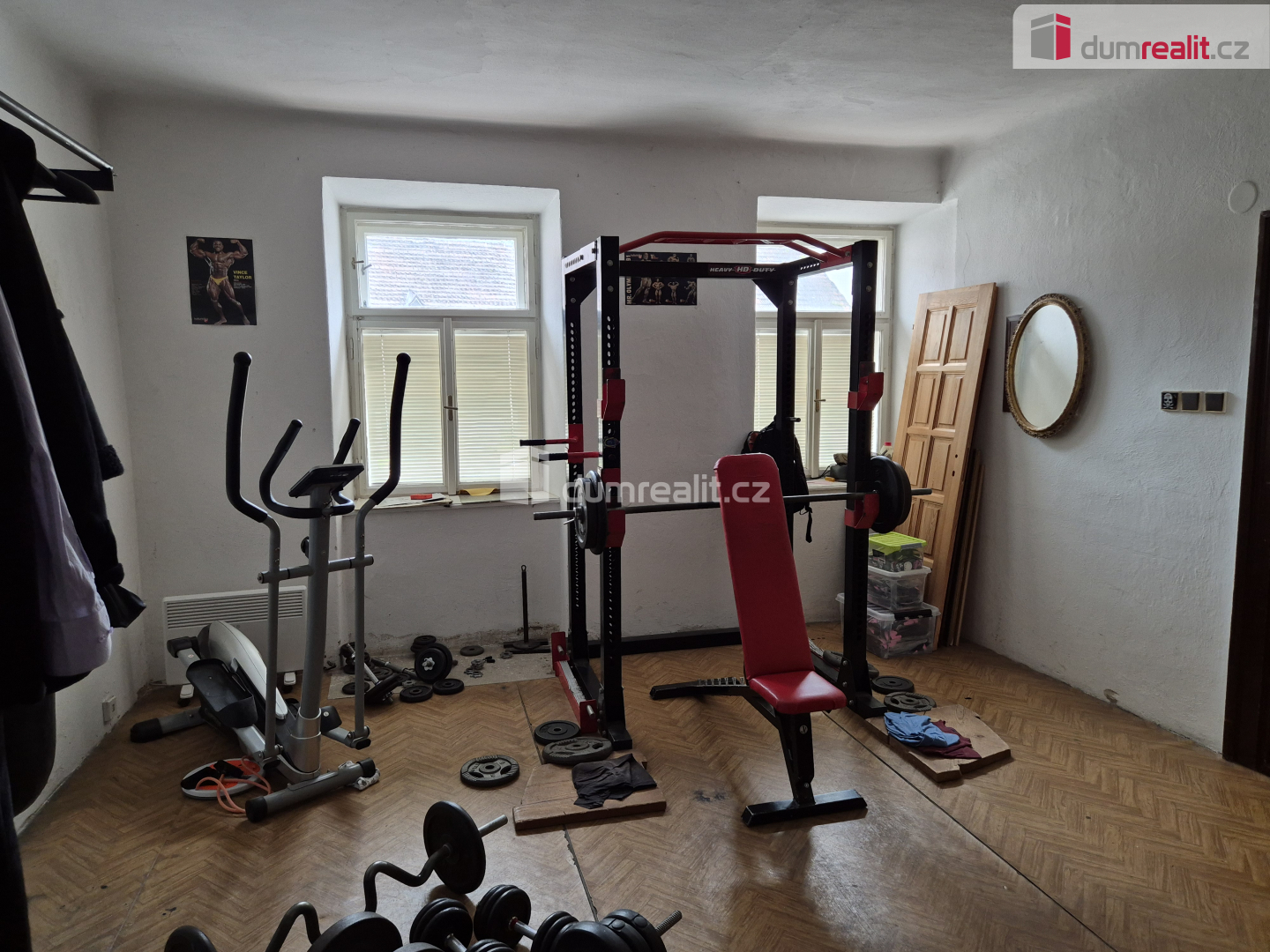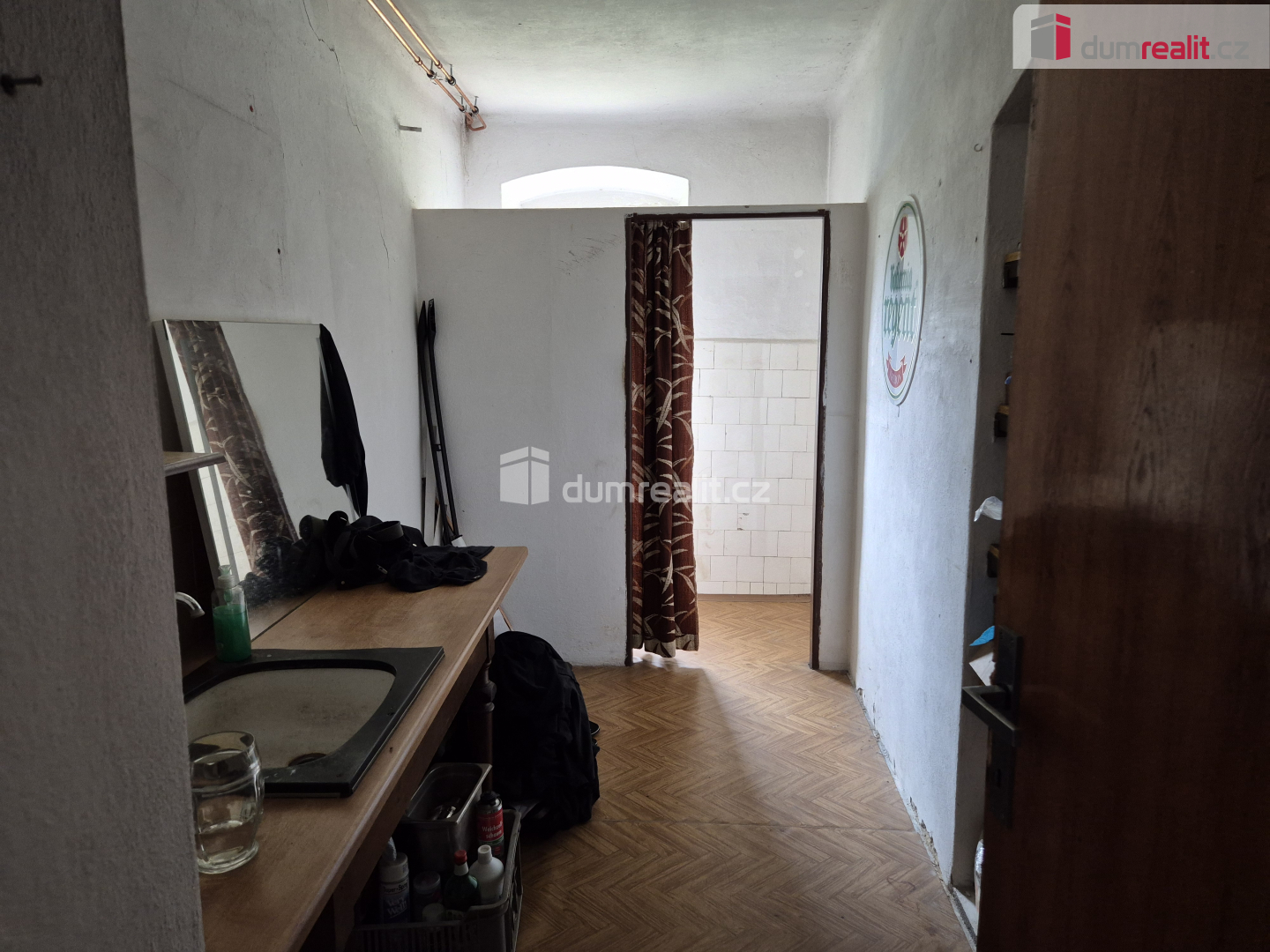 Částečně podsklepený dvoupodlažní dům nabízí v prvním patře prostorný, designově osobitý byt 4+1, kdy tři ze čtyř pokojů jsou neprůchozí a ložnice je napojena otevřeným průchodem na obývák s dekorací z kamene. V koupelně je vana, umyvadlo WC a prostor na pračku. Z centrální chodby je průchod prosklenou stěnou na verandu, ze které je skvělý přehled o dění na zahradě. Dále v podkroví započatou vestavbu, potom zahradu, stodolu a garáž.