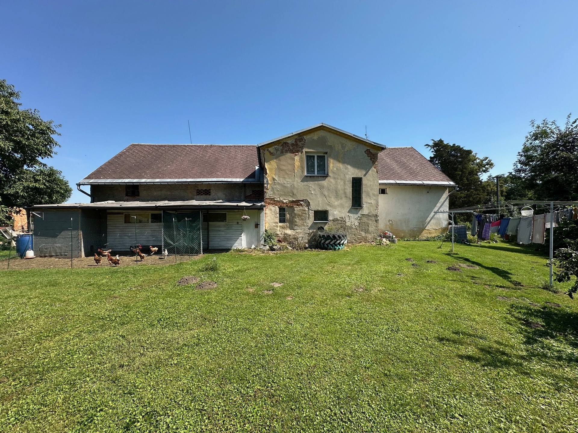 Dům je svou výměrou velmi atypický - dispozice v přízemí je sice 3+1, ale tato dispozice se dá zvětšit na 4-5+1 a možná i více. Navíc je velmi praktické, že obytná část navazuje na zemědělskou část a nemusíte tak chodit ve špatném počasí z vnitřních částí domu.