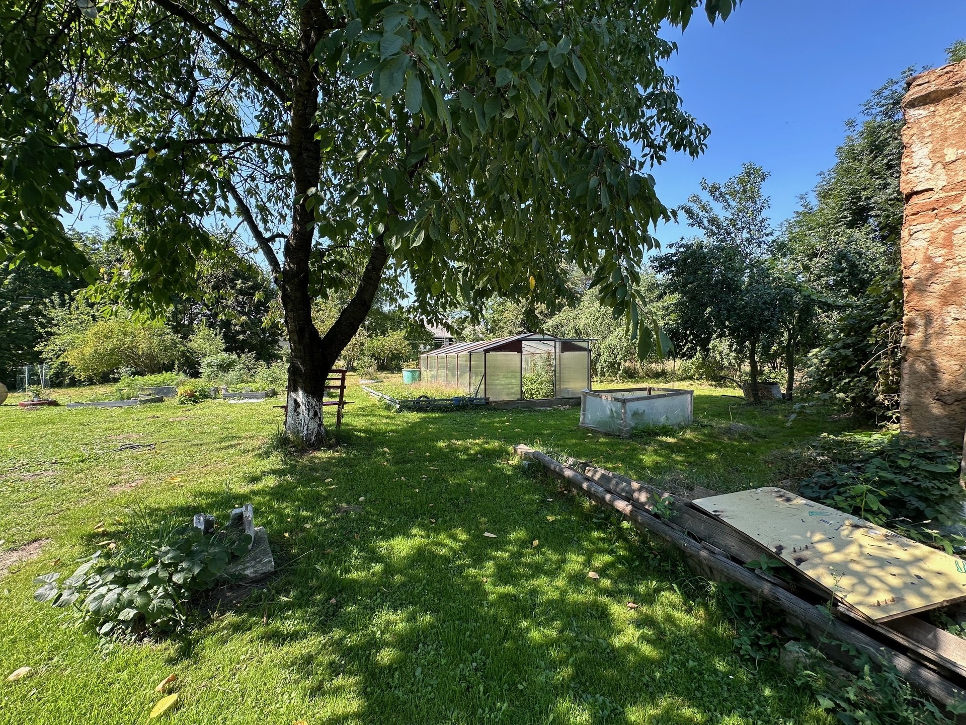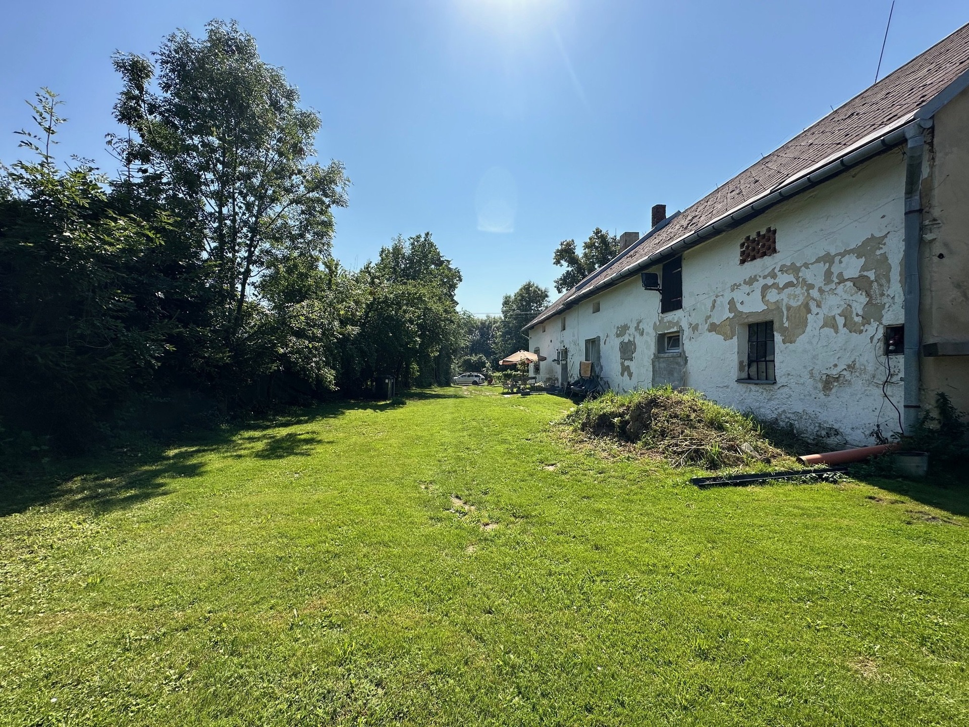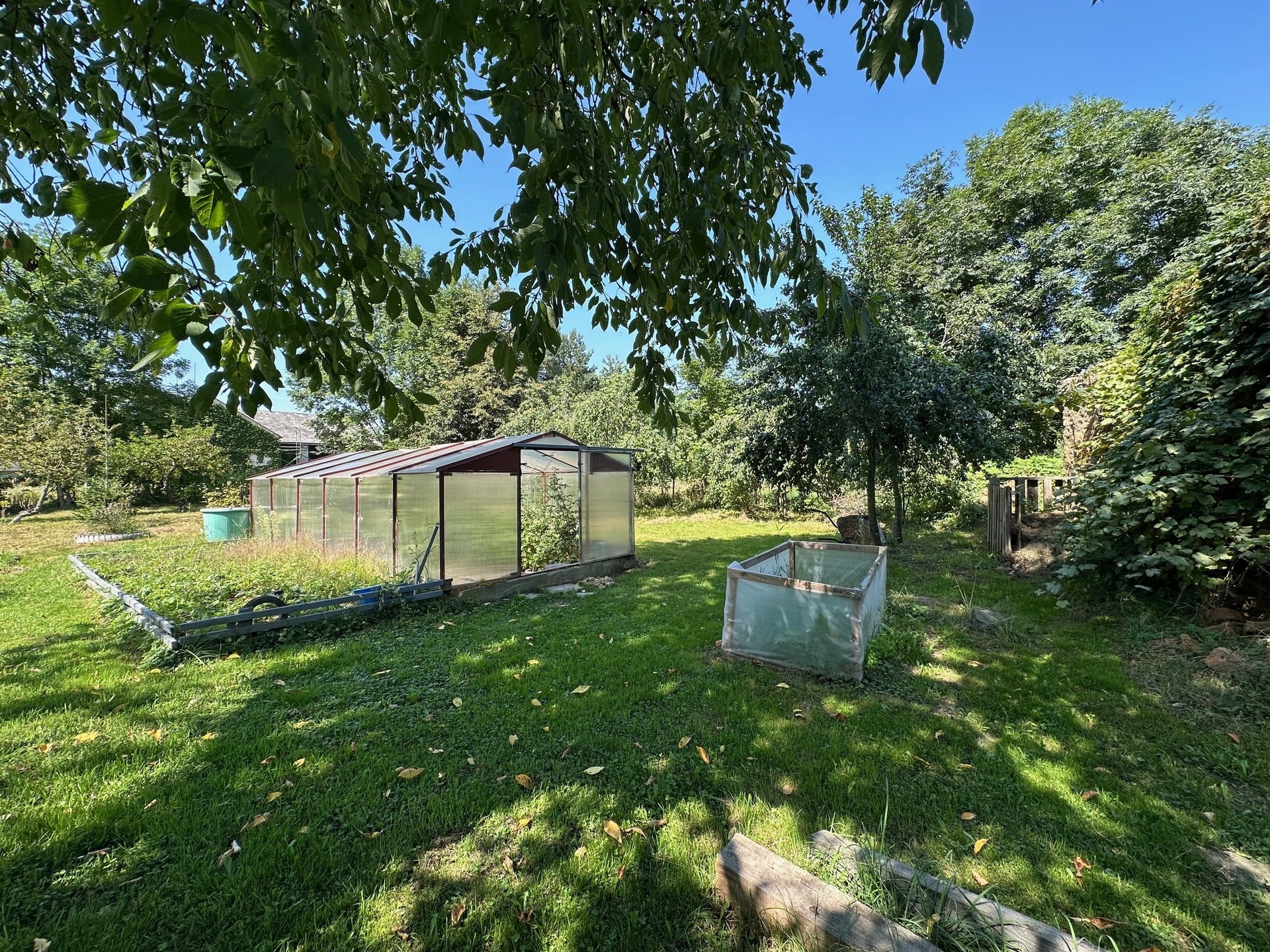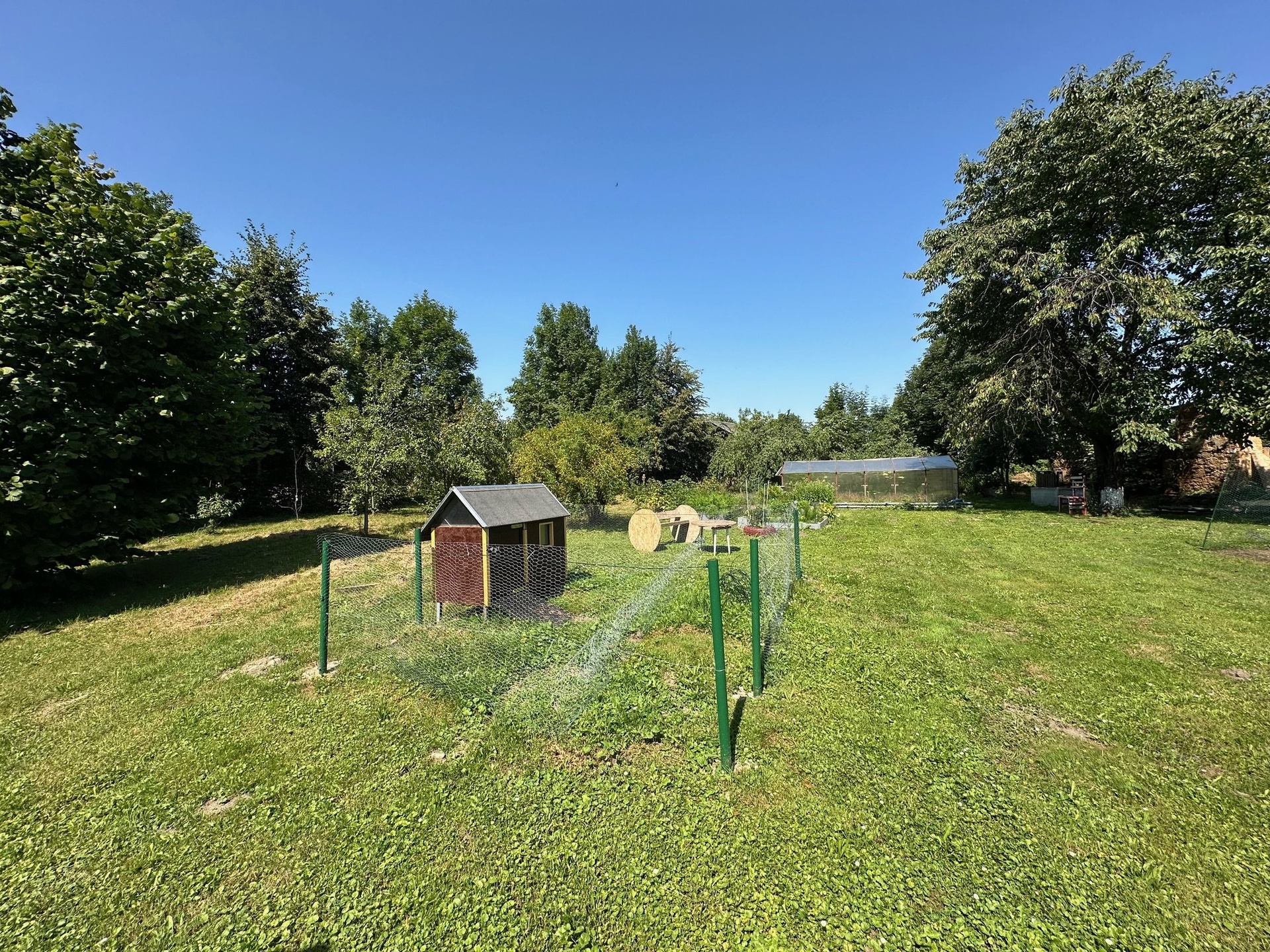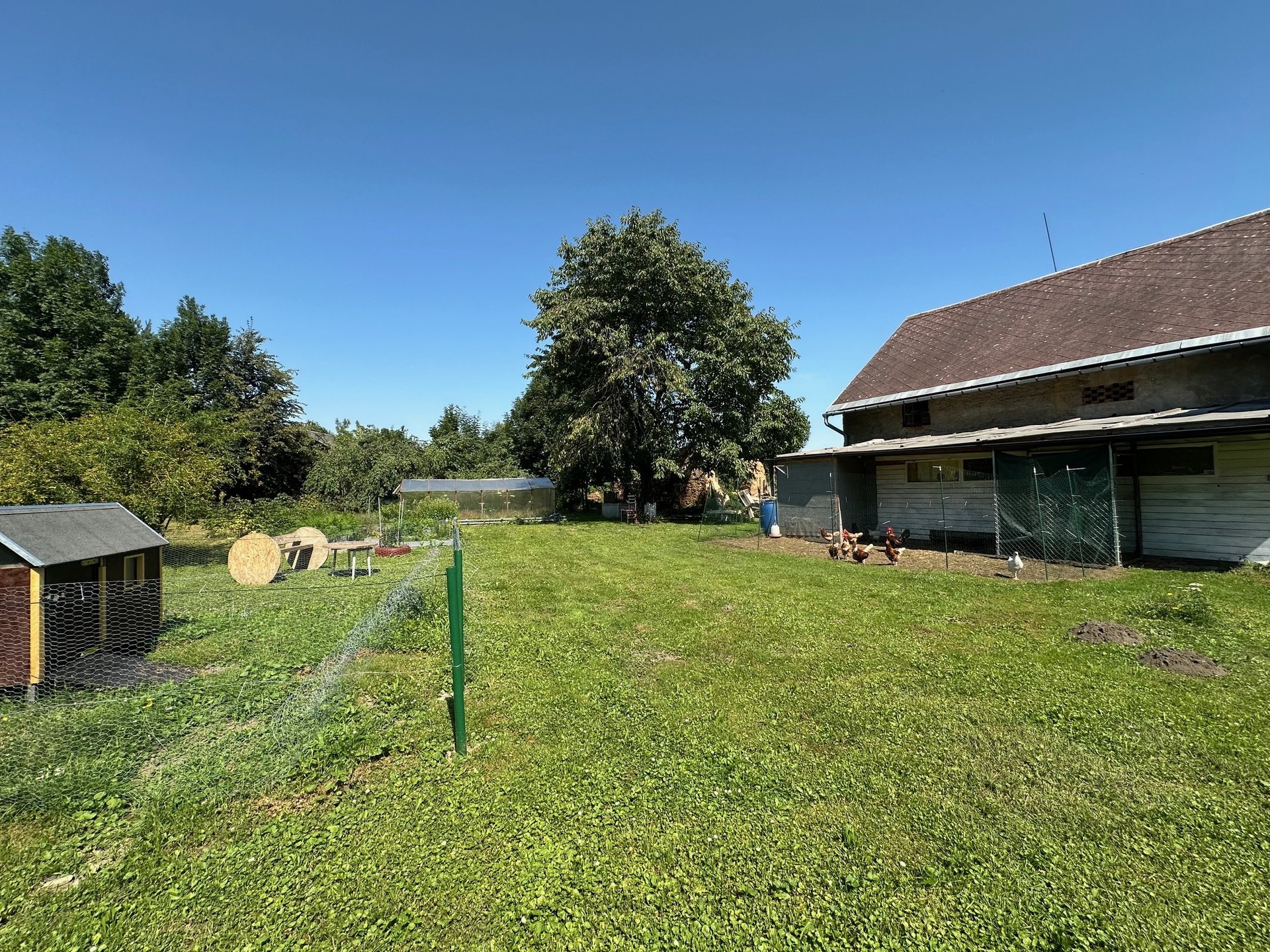 Dům disponuje opravdu velkou zahradou, na které jsou již vzrostlé ovocné stromy, skleník a k domu patří velká zemědělská budova s dalším využitím např. podnikání.