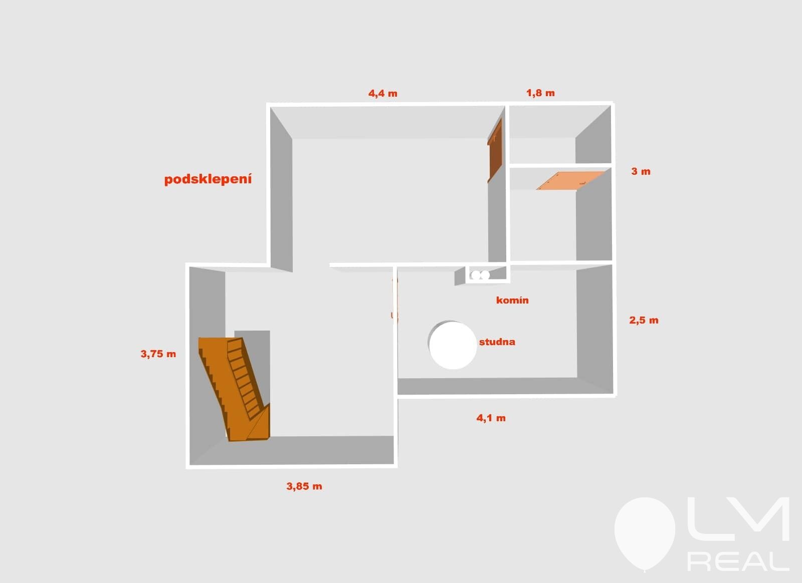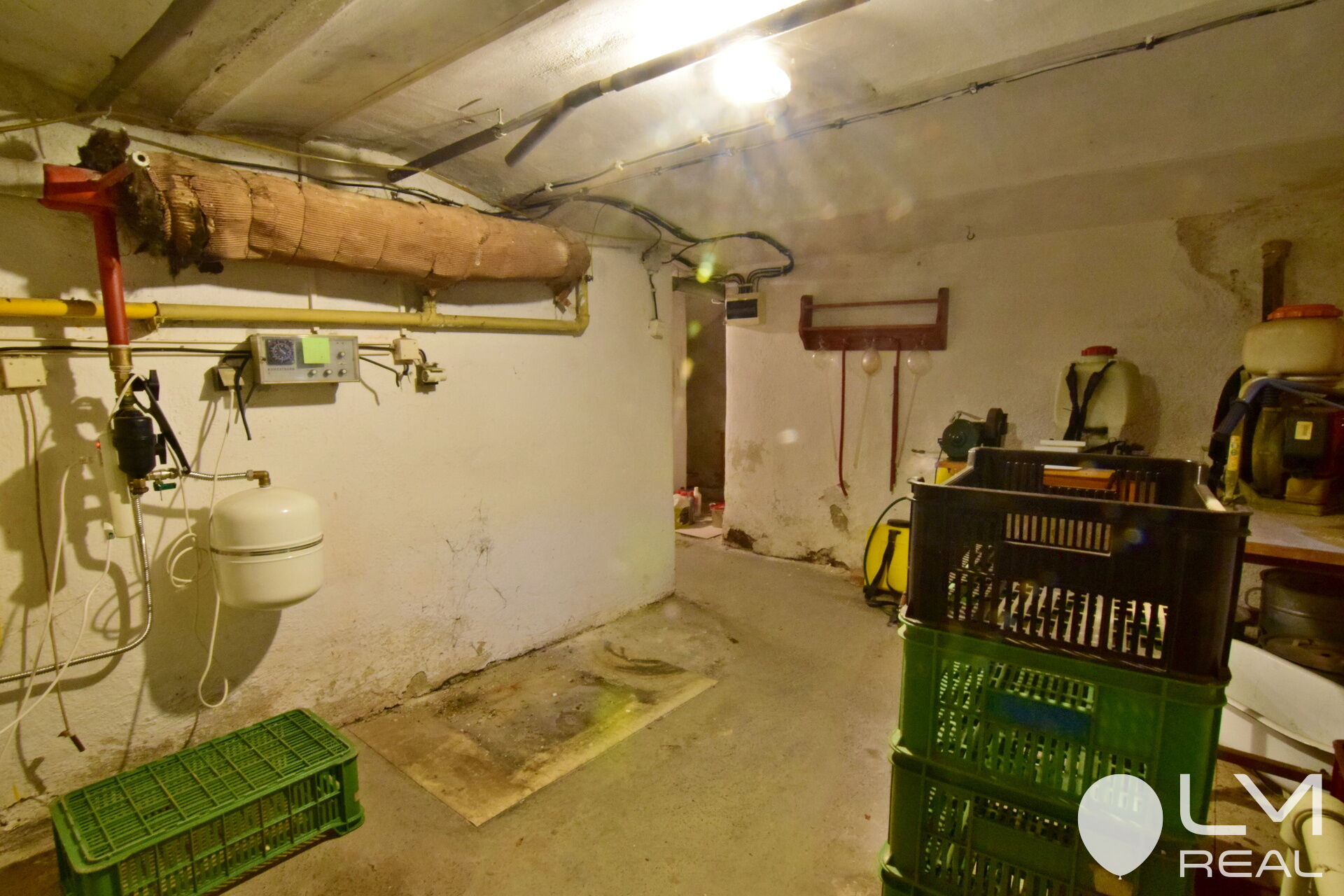 Sklep 38,46 m2: vodárna s vrtanou studnou hl. 7,2m, s čerpadlem, technická místnost s plynovým kotlem, sklad na ovoce a zeleninu.