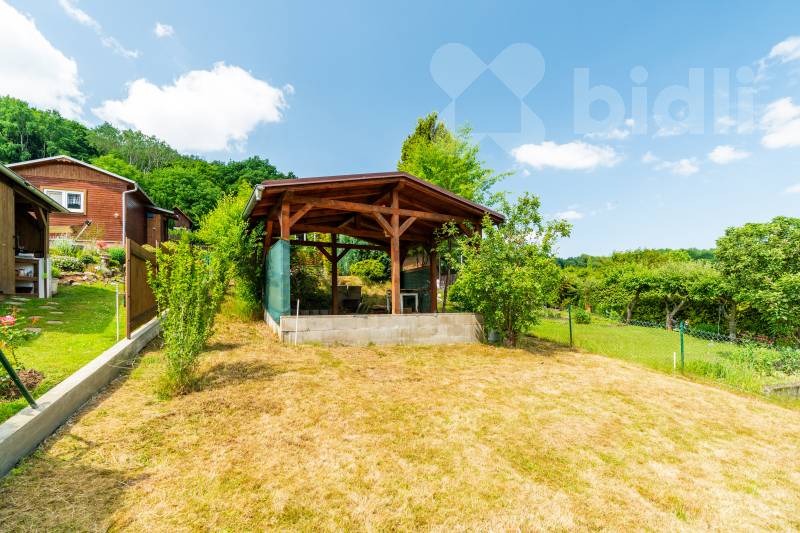 Na pozemku se nachází rovněž bytelný zahradní altán vhodný pro venkovní posezení. K dispozici je stání pro jeden osobní automobil přímo před chatou.