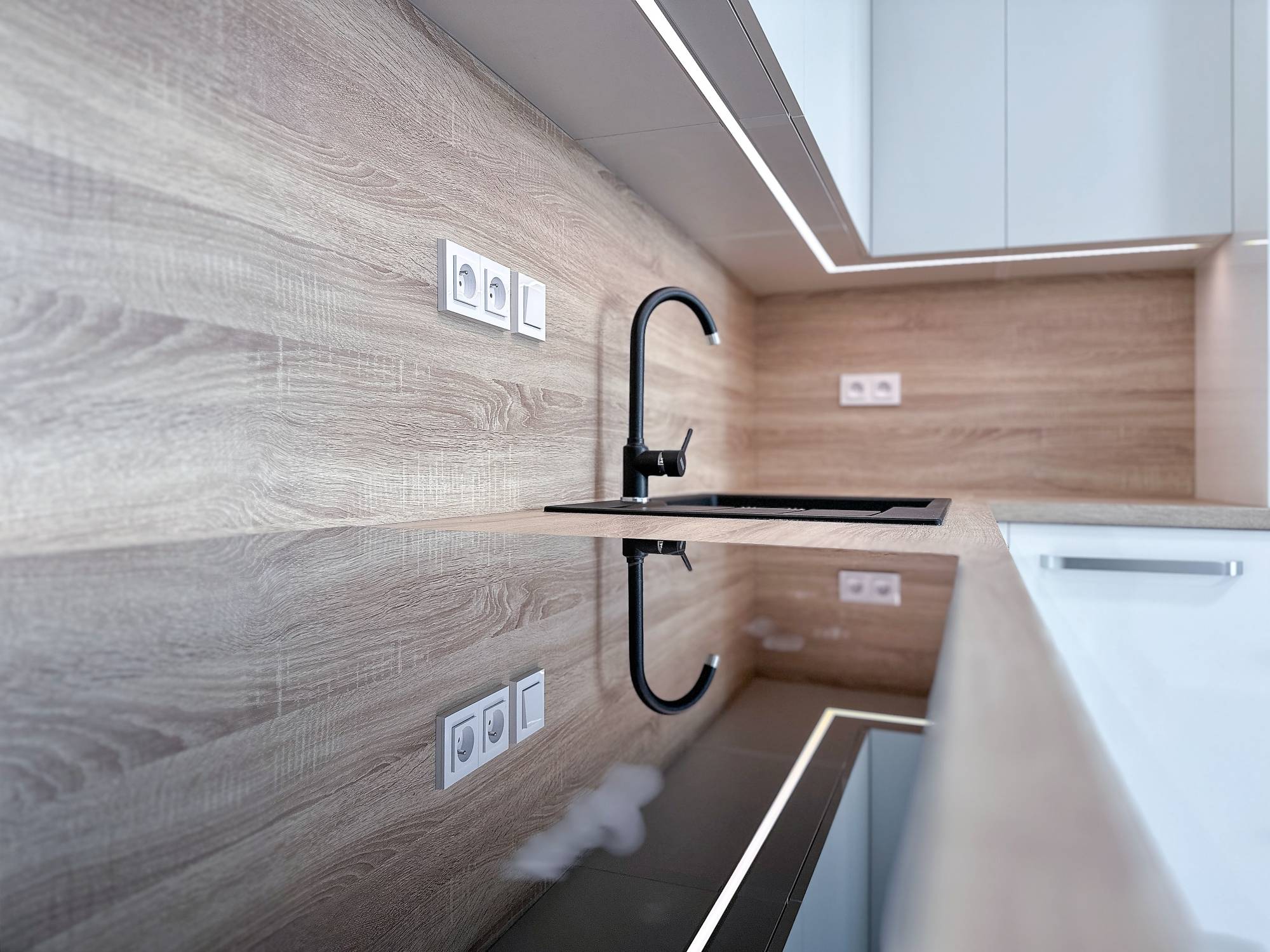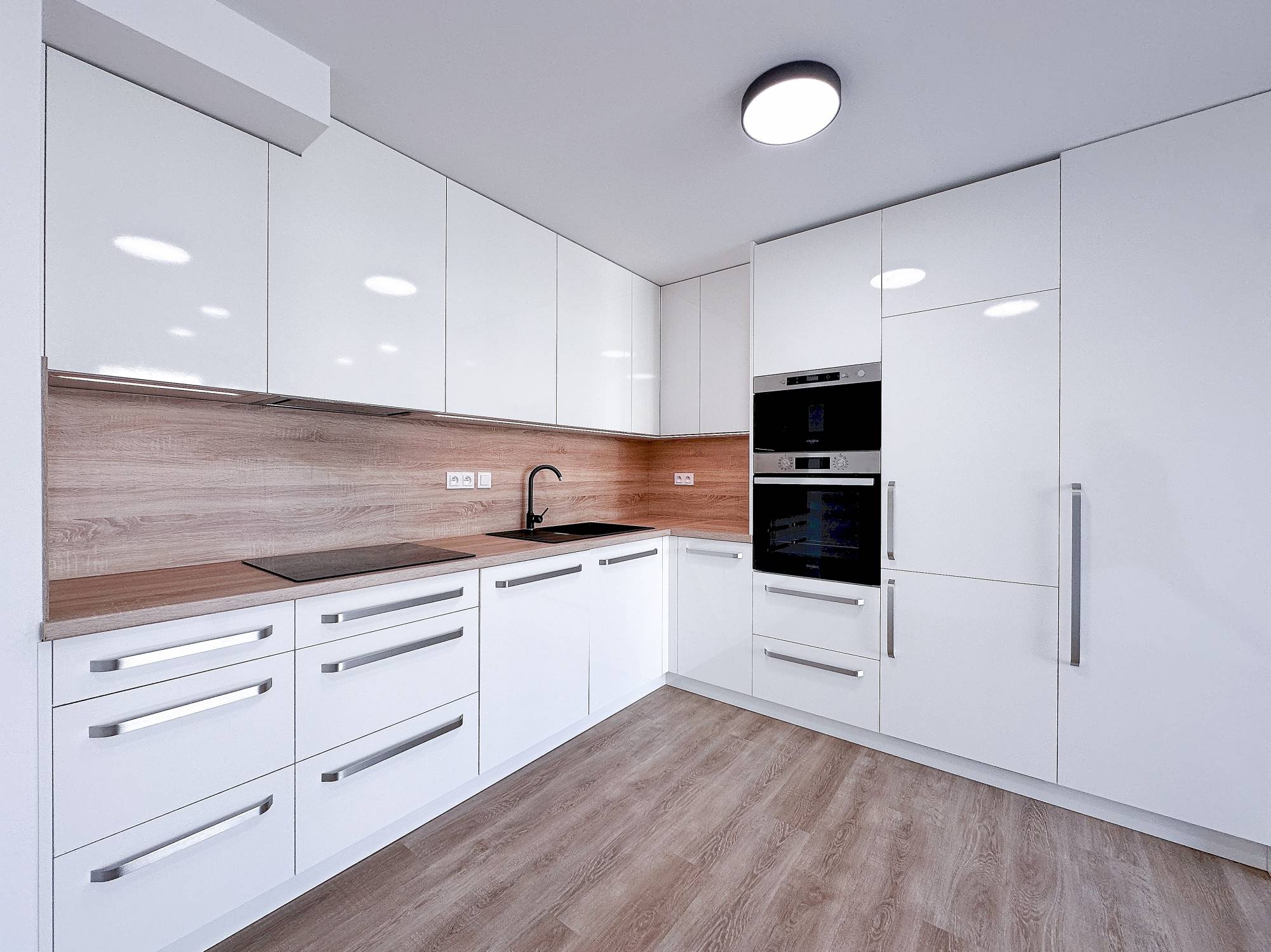 Kuchyňská linka plně vybavená - tak se ukaž - pečící trouba, indukční varná deska – nachystej si vhodný hrnce, hele samo že myčka, lednice s mrazákem, koupelna se sprcháčem, umyvadlo s osvětleným zrcadlem pro tvůj make-up, takže budeš zase za kočku, no i s dostatkem místa pro pračku. Toaleta samostatná.