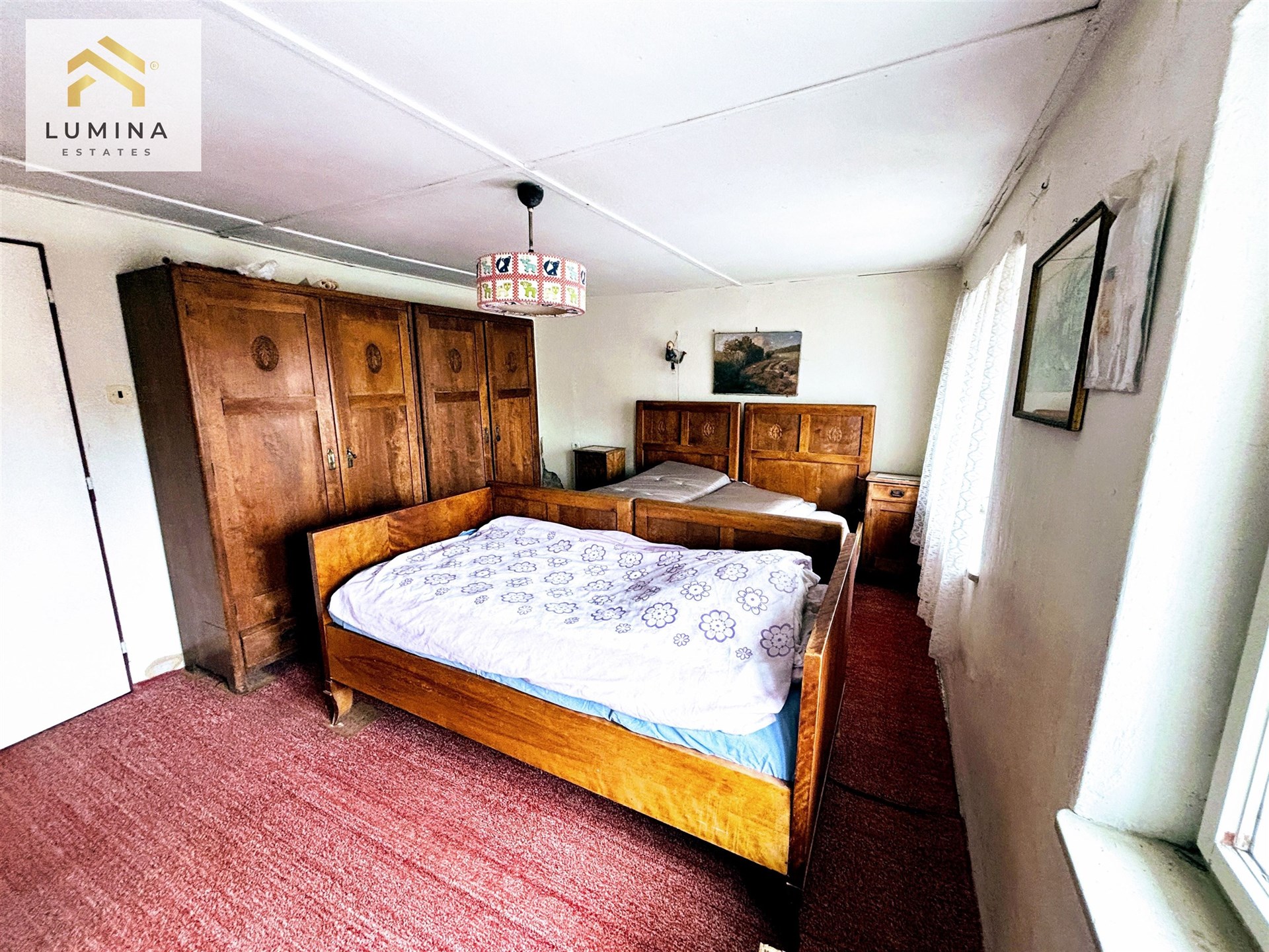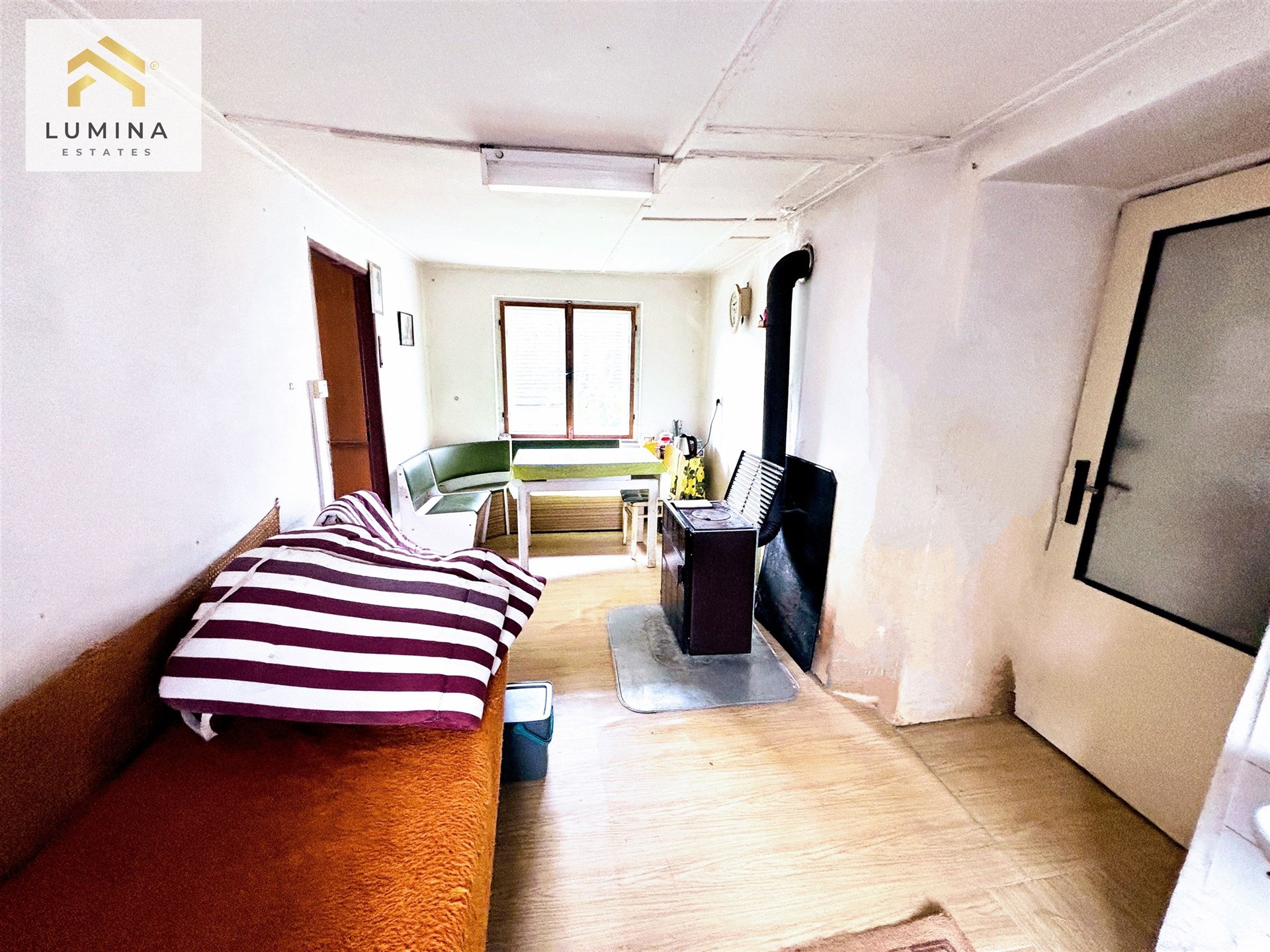Po vstupu do zádveří naleznete prostornou předsíň, dvě ložnice, kuchyňský kout, koupelna jejíž součástí je WC a sprchový kout. Půdní prostory poskytují možnost dalšího využití k rekonstrukci k obývání. Střecha je 12 let po rekonstrukci, materiál kanadaský šindel.