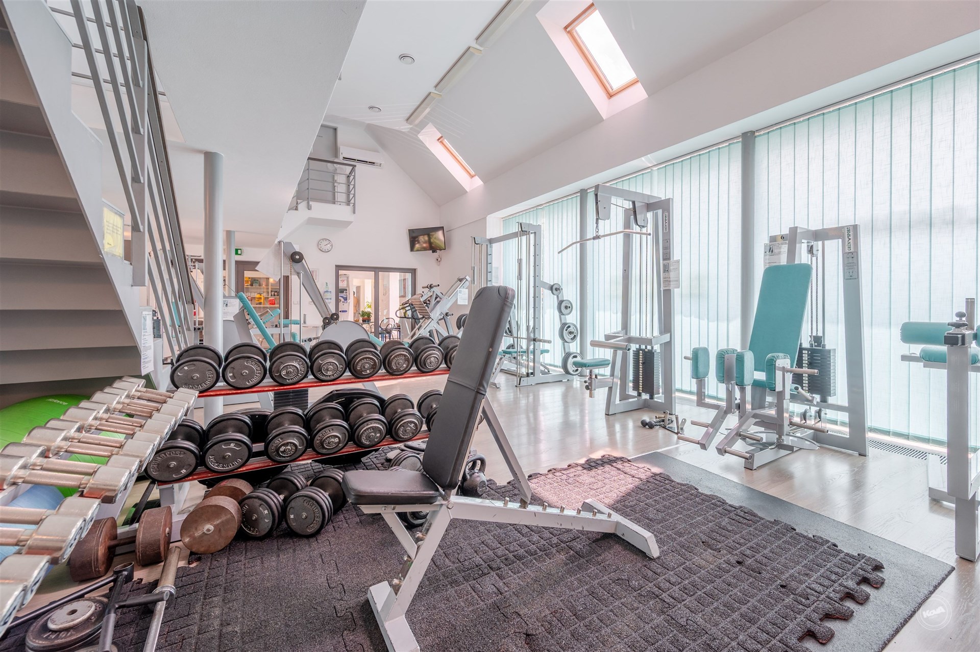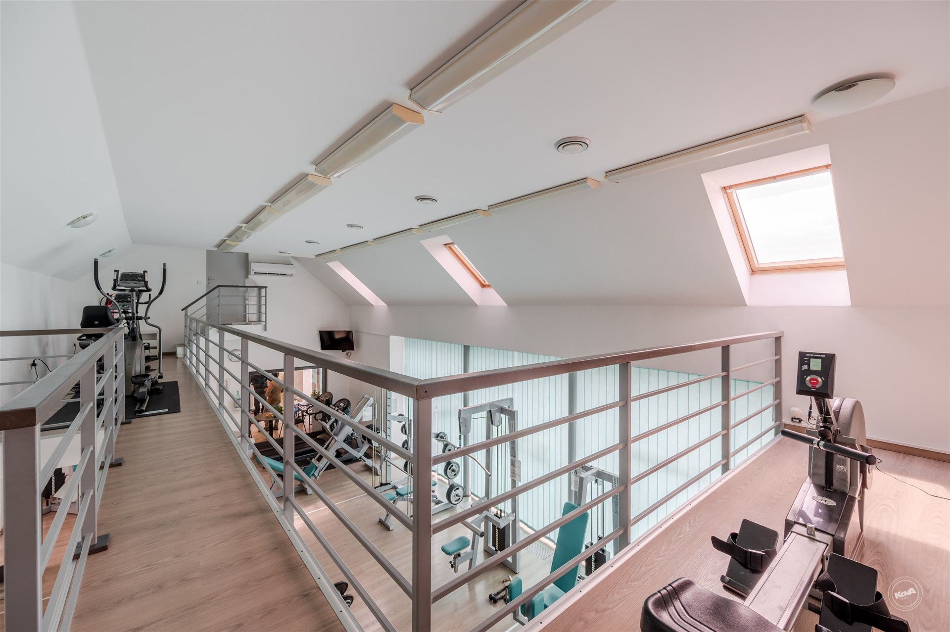 Dispozice budovy nabízí v přízemí vstupní halu s recepcí, variabilní prostory vhodné pro vybudování pokojů, šatny a kompletní sociální zázemí včetně bezbariérového WC. Velká prosklená stěna zajišťuje dostatek denního světla a příjemné propojení s venkovní částí. Podkroví tvoří otevřená galerie a další místnosti, které lze efektivně využít jako ubytovací jednotky, zázemí pro personál či administrativní část.
