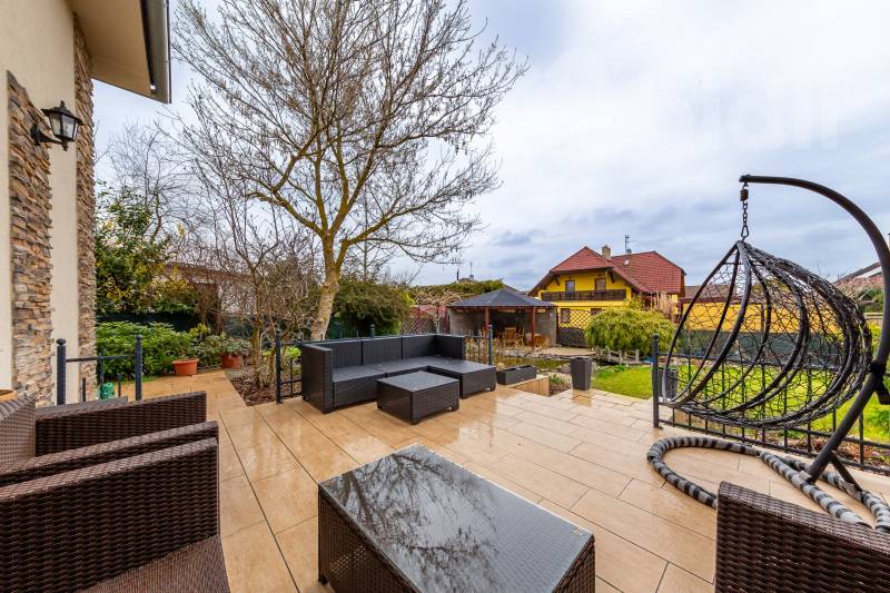 Skutečnou oázou klidu je pečlivě udržovaná zahrada, která nabízí dostatek soukromí i prostoru k relaxaci. Najdete zde vzrostlou zeleň, okrasné rostliny a příjemná zákoutí ideální pro odpočinek nebo posezení s rodinou. Dominantou zahrady je okrasné jezírko, které dodává celému prostoru harmonii a jedinečnou atmosféru.