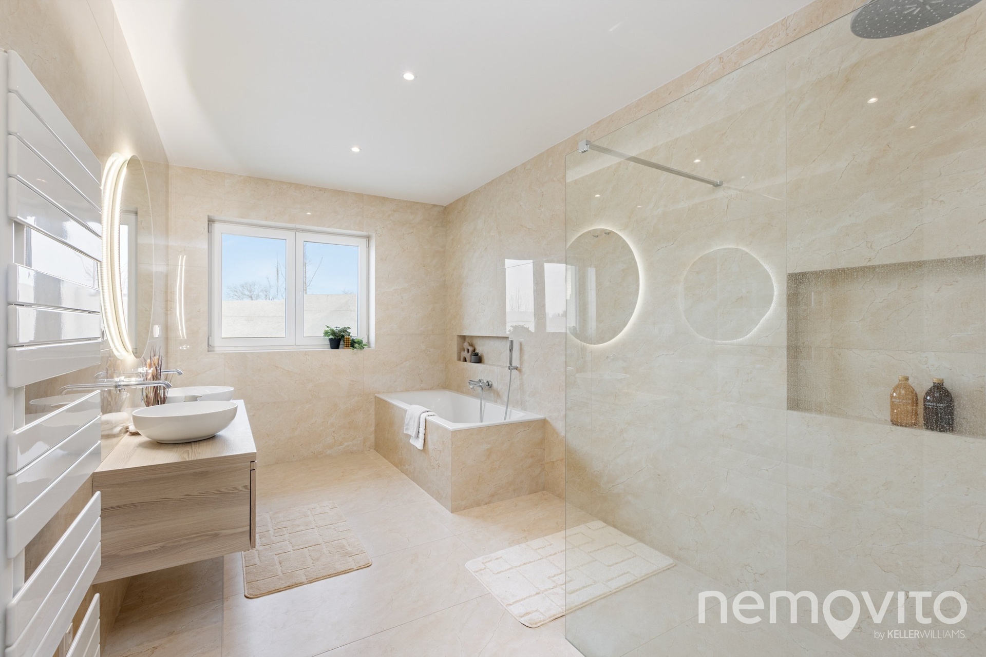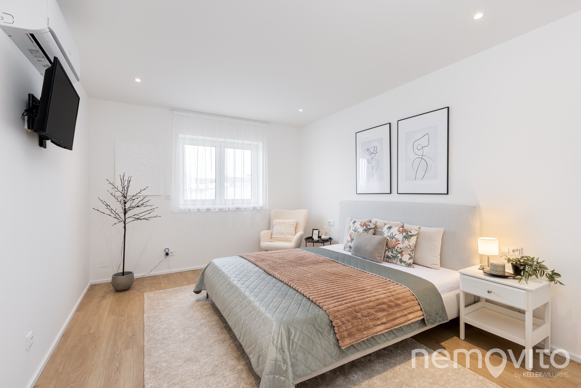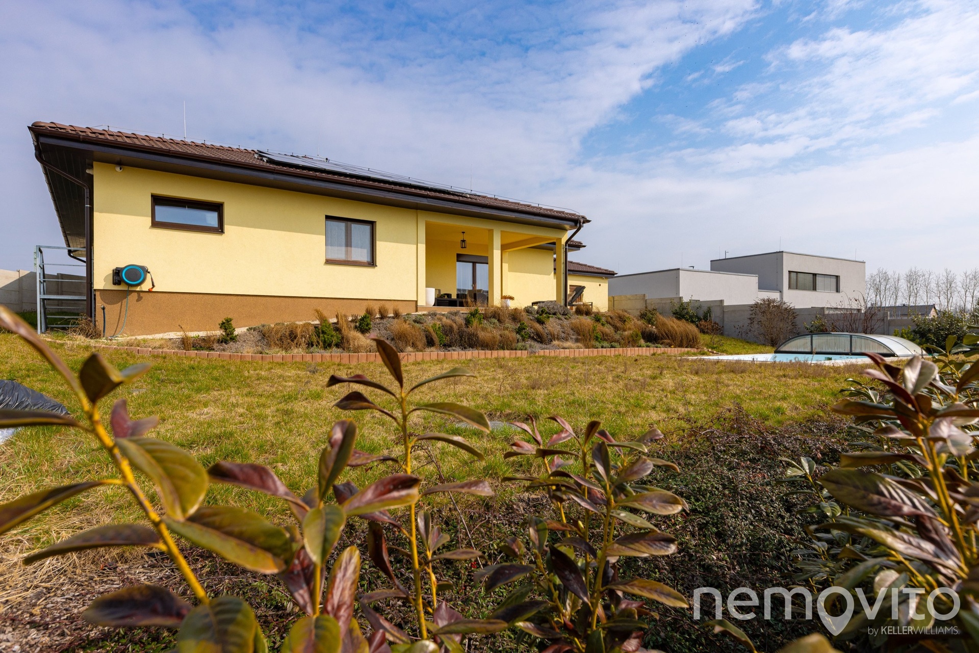 Opravdu velký bungalov o dispozici 5+kk a ploše 186 m2, ke kterému náleží ještě samostatná 25 m2 garáž a bazén. Dům je vybaven FVE s tepelným čerpadlem a jeho roční spotřeba je do 4 MWh elektřiny. Mimo provozních nákladů však vyniká zejména nezvykle velkou plochou, která je pro bungalovy atypická, ale slouží perfektně. Dům byl dokončen v roce 2023 a je tedy stále jako nový.