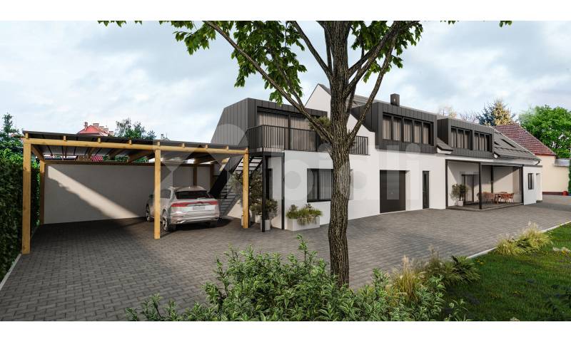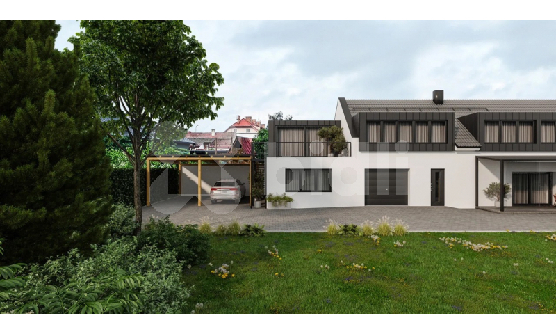 Dům je navržen pro dvougenerační bydlení, což znamená dvě samostatné bytové jednotky o dispozici 4+1. První jednotka nabízí pohodlí dvou koupelen a dvou šaten, které zajistí dostatek úložného prostoru. Druhá jednotka se pyšní terasou s výhledem do zahrady, garáží a dokonce ateliérem či dílnou - ideální pro vaše koníčky nebo práci z domova.