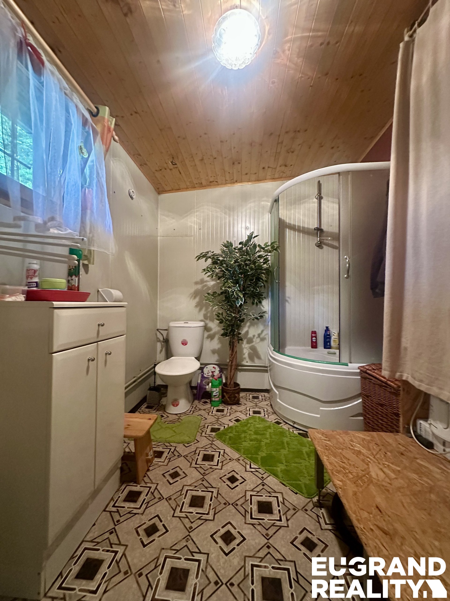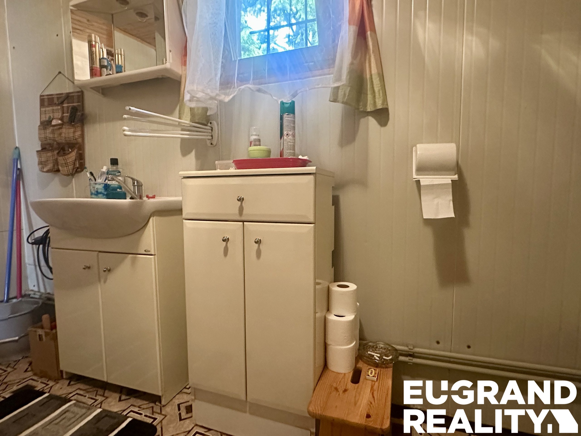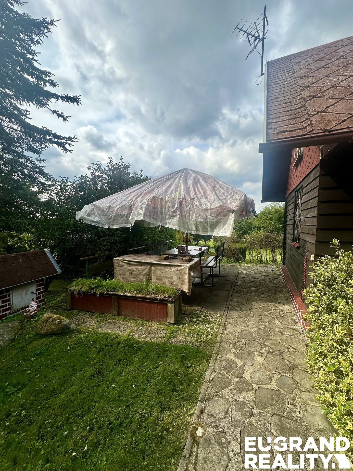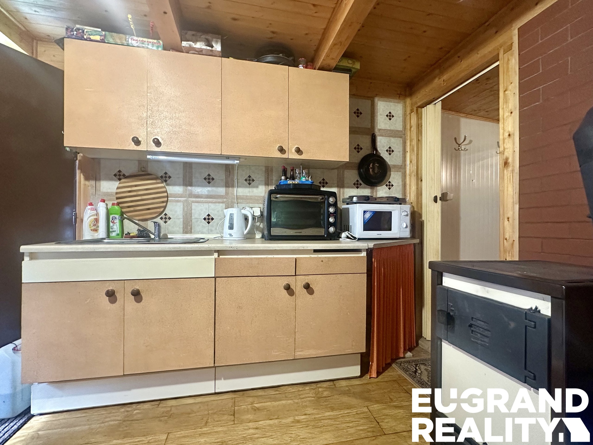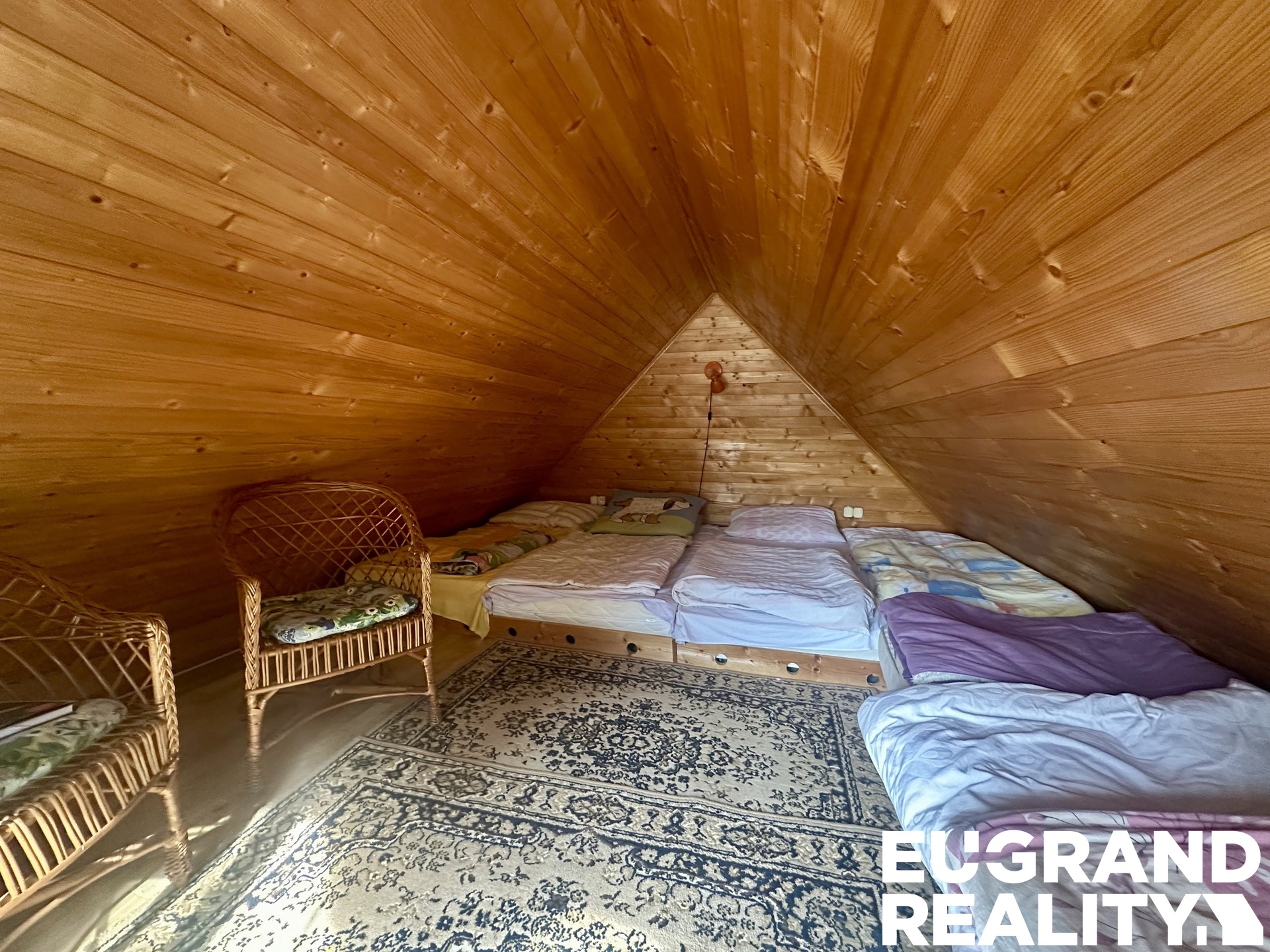 Dispozice: kuchyň s obývacím prostorem, koupelna se sprchovým koutem a WC, v podkroví prostor pro spaní.