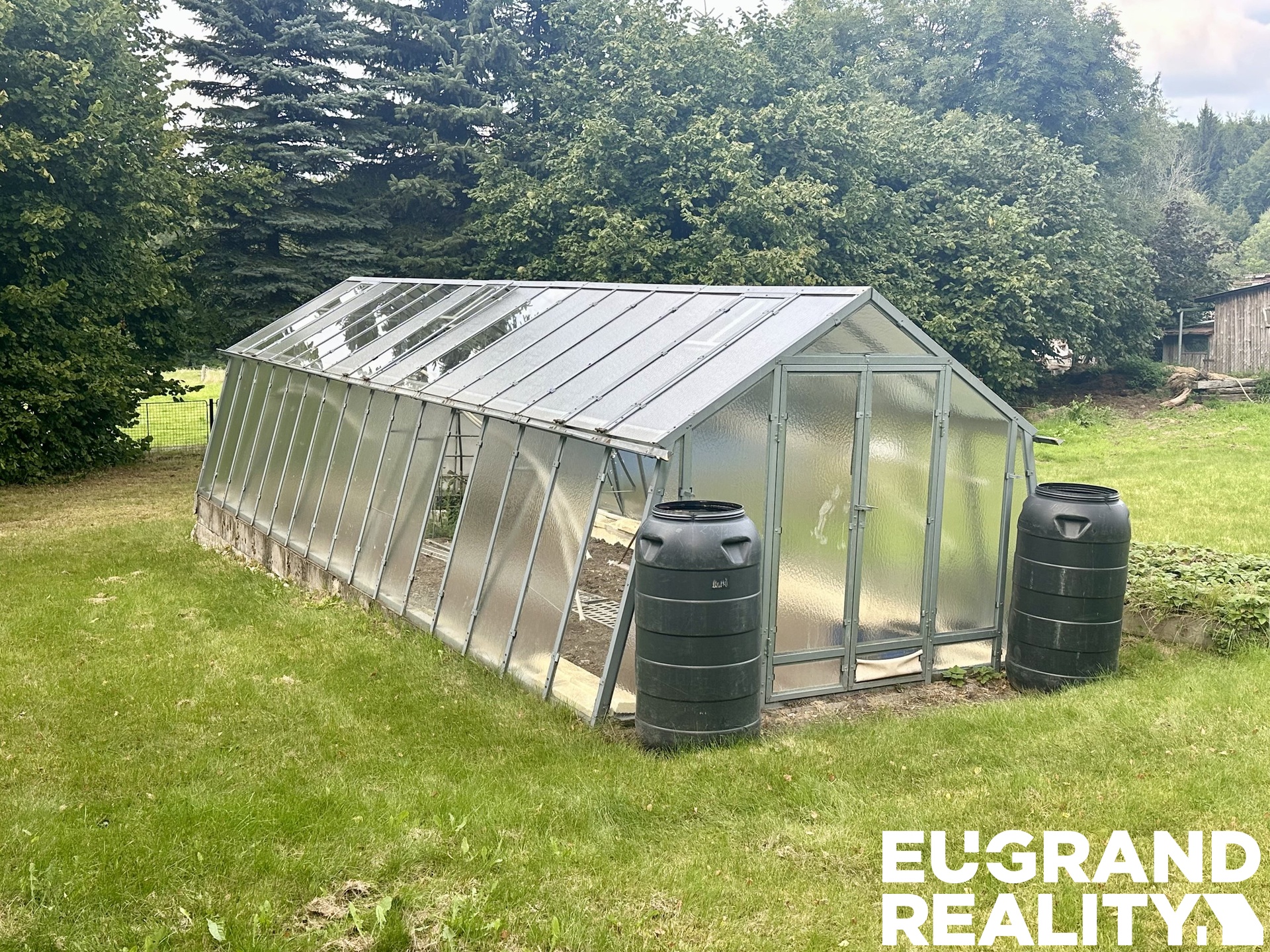 Na pozemku se nachází lodní kontejner 6 × 3 m – využívaný jako technické zázemí, skleník 6 × 3 m, dřevník, houpačka, ovocné stromy (jabloň, třešeň) a okrasné keře.