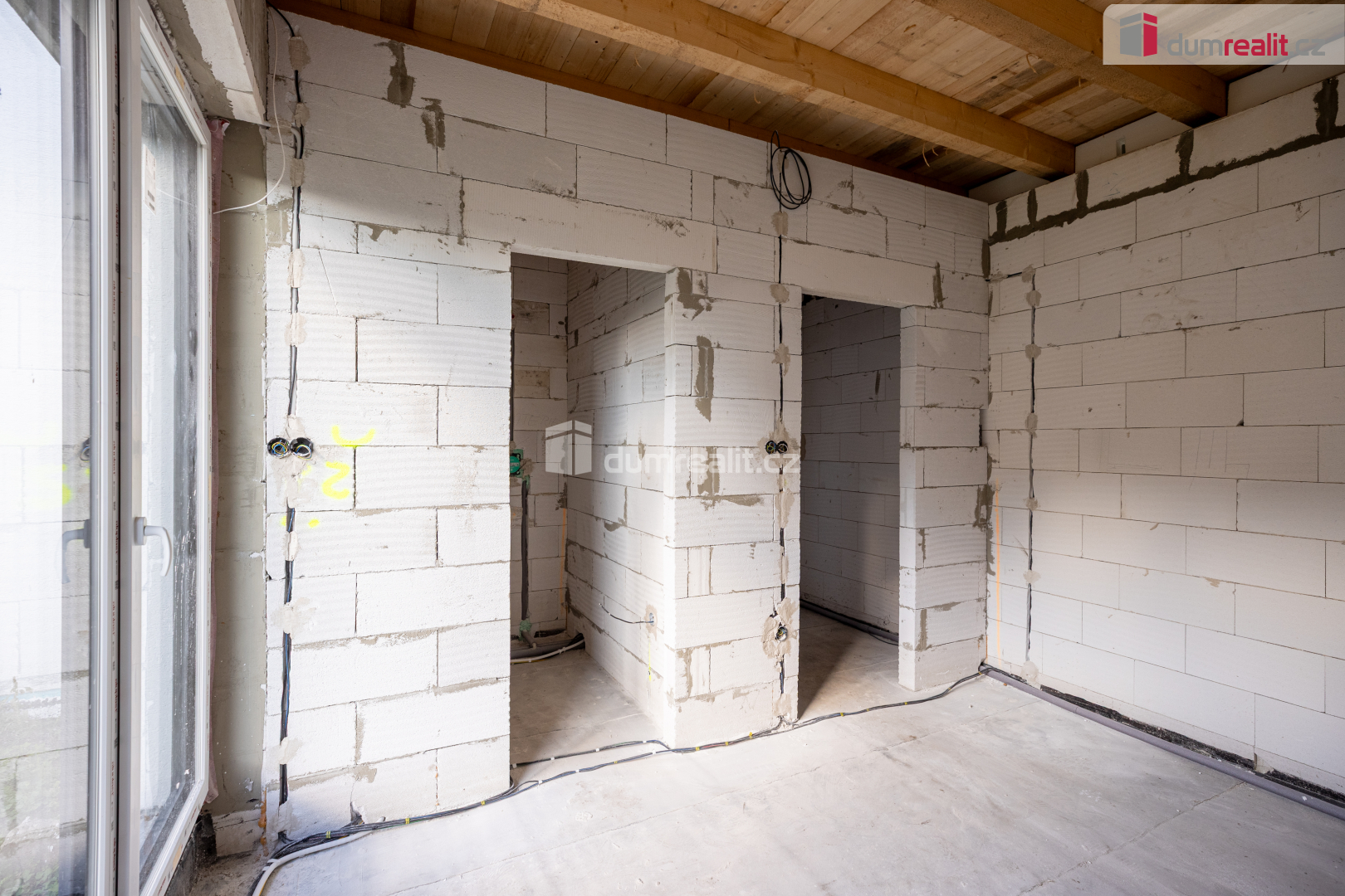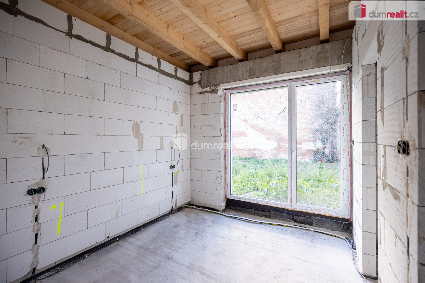 Cena zahrnuje dům v podobě - veškeré technické zázemí (topení, ohřev vody - bojler, rozvedná elektřina a voda, příprava na bazén, solární panely), vnitřní omítky, betonové podlahy, oplocení zahrady.