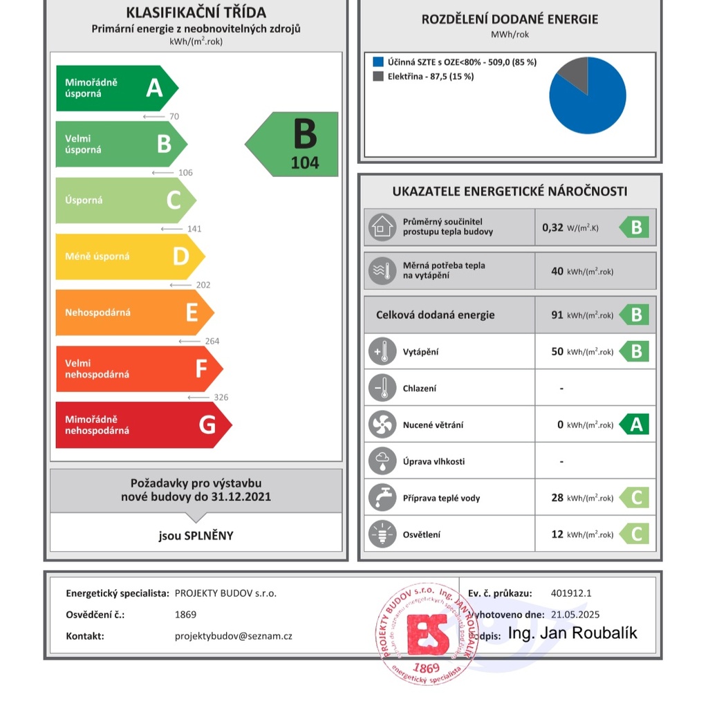 Ukazatel energetické náročnosti budovy:104 kWh/m²
