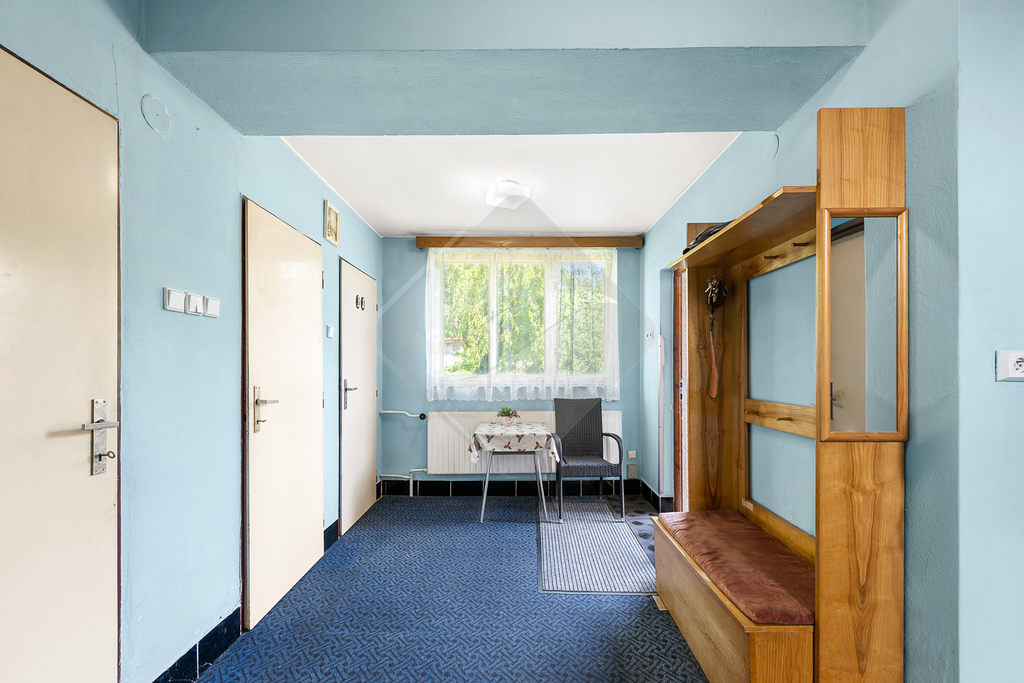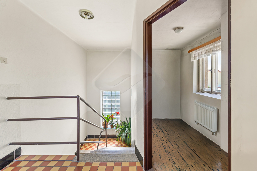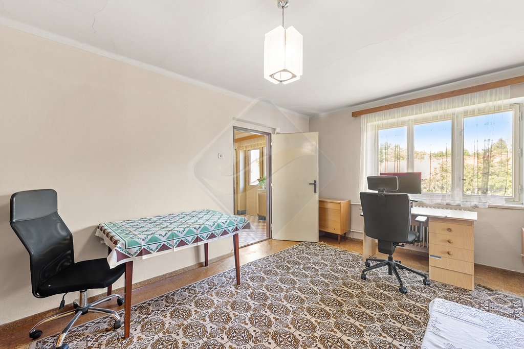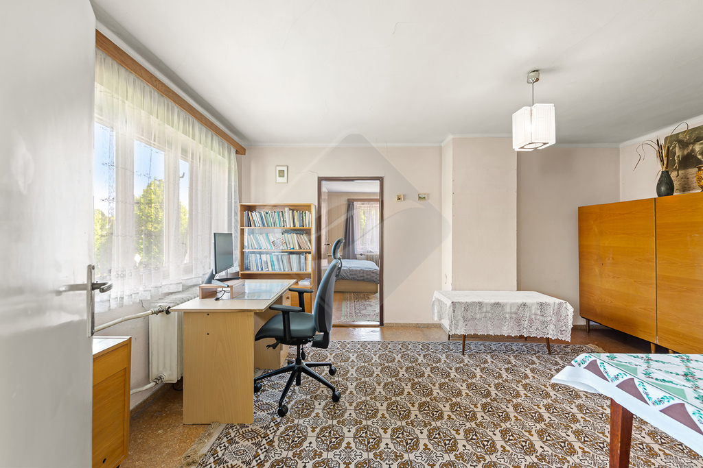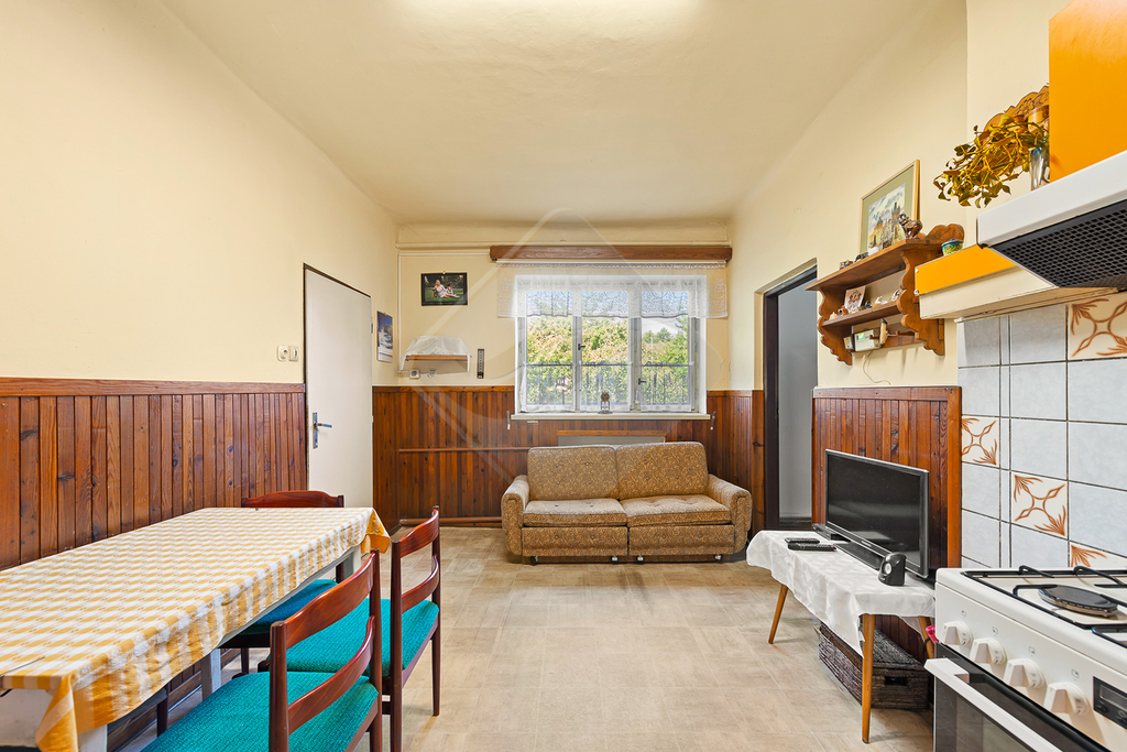 V přízemí domu se nachází předsíň, prostorná kuchyň, obývací pokoj, WC, dvě spíže, sklad, koupelna s vanou, prádelna, sprchový kout a sklad s dílnou. Na poschodí naleznete pokoj, velkou ložnici, pracovnu a sklad s přístupem na prostornou půdu, která nabízí možnost vybudování dalších prostor k bydlení. Z chodby na poschodí je vstup na prostornou terasu s výhledem do zahrady.